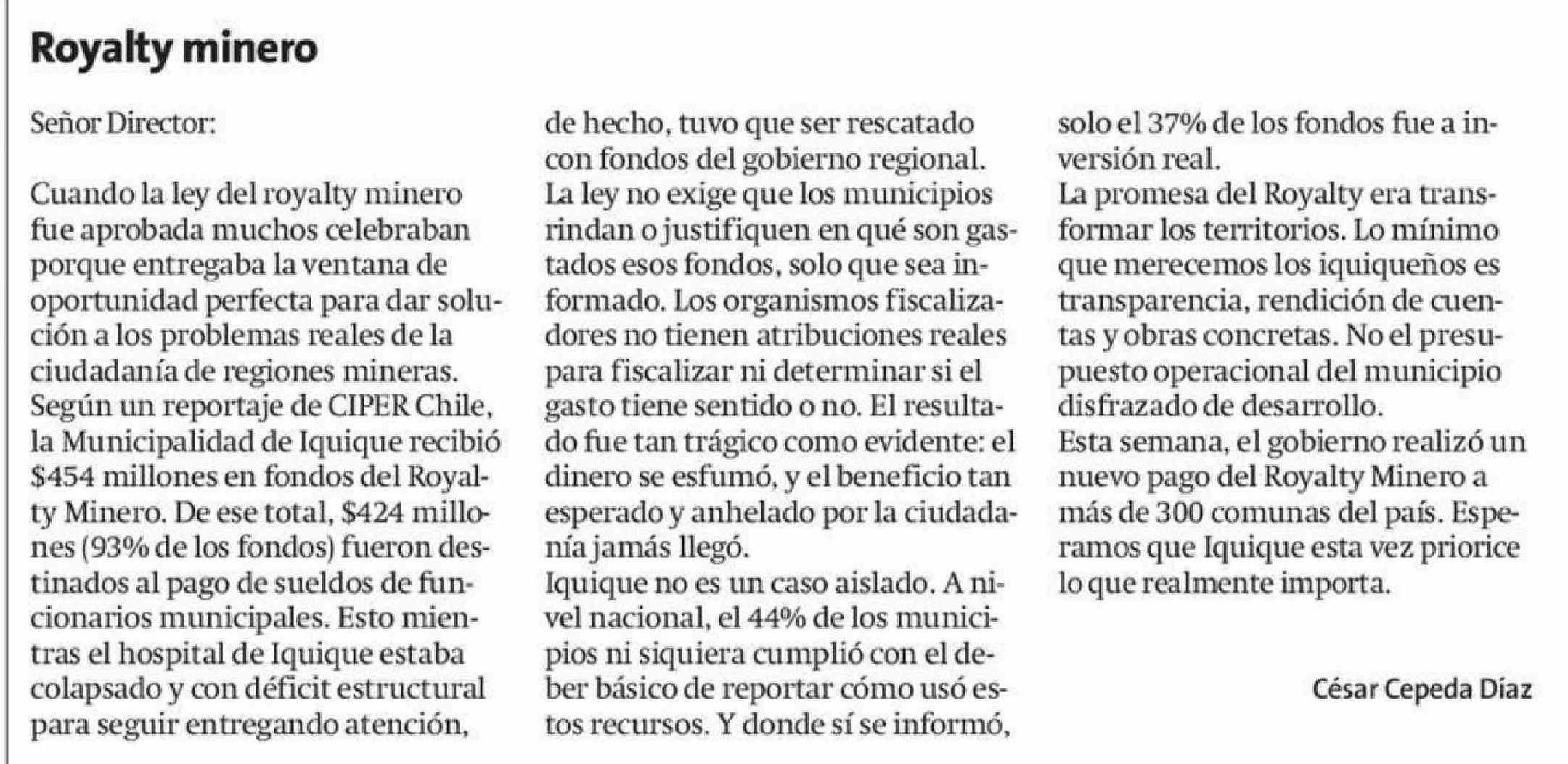 Royalty minero