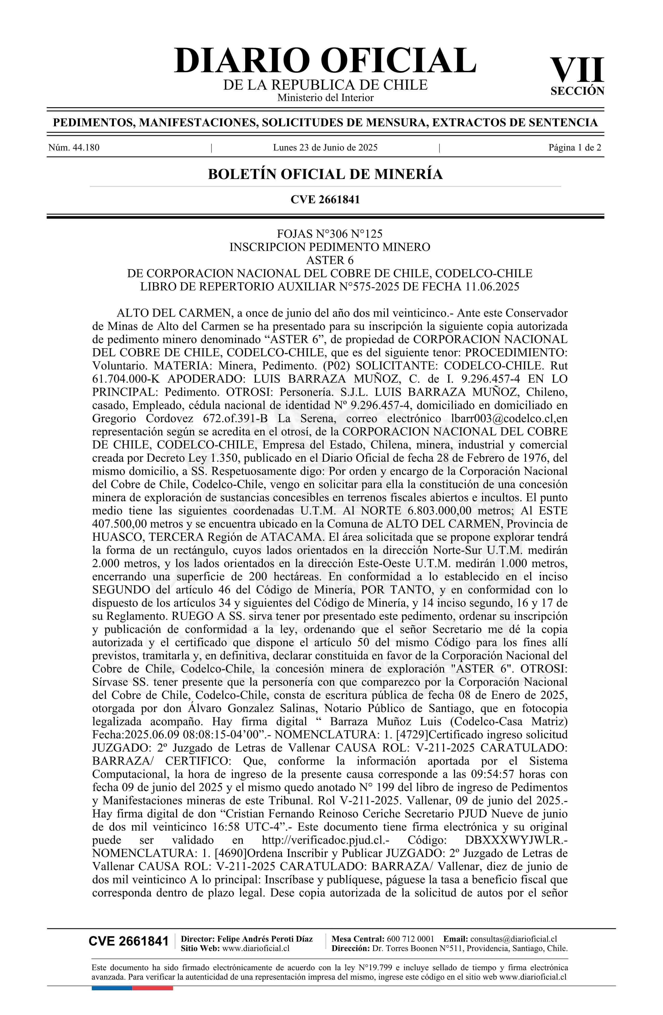 ASTER 6 / Corporación Nacional del Cobre de Chile