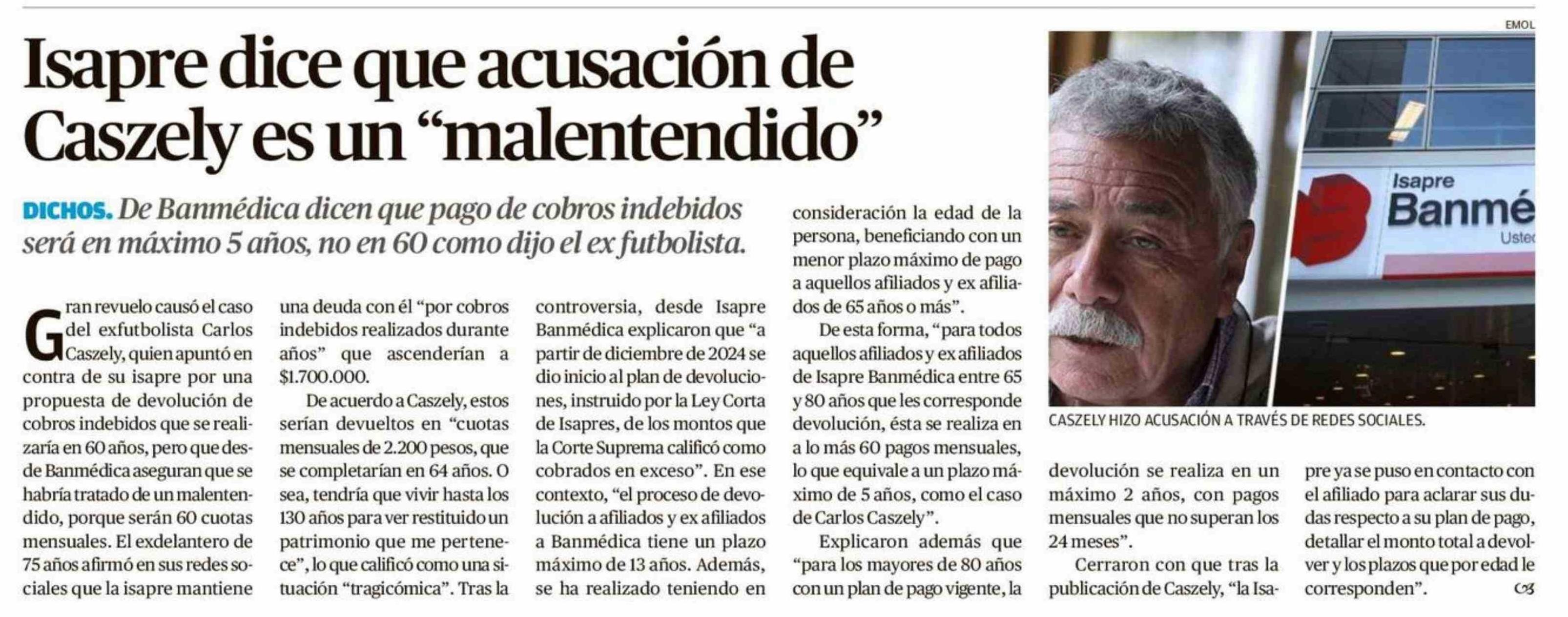 Isapre dice que acusación de Caszely es un "malentendido"