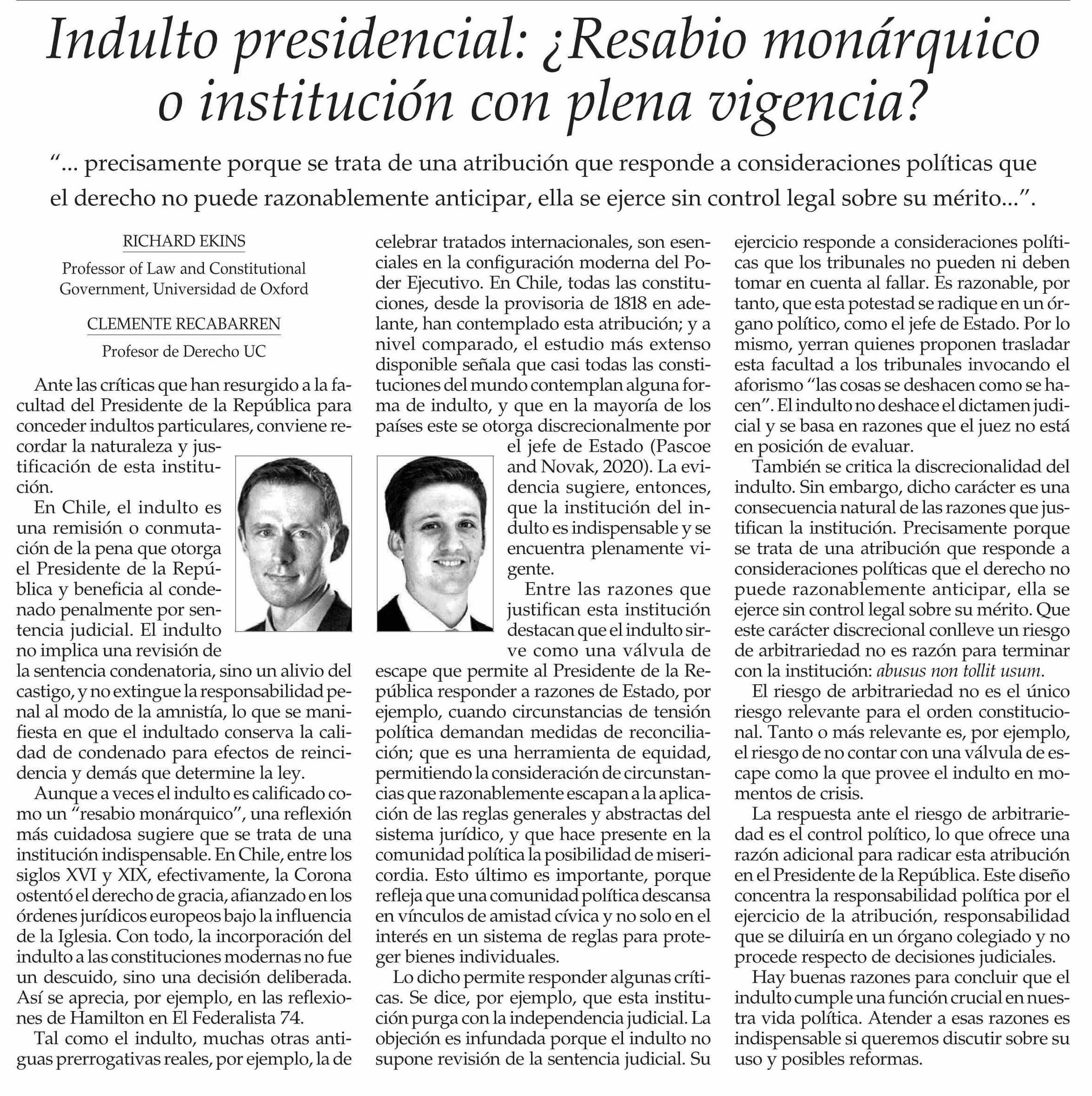 Columnas de Opinión: Indulto presidencial: ¿Resabio monárquico o institución con plena vigencia?