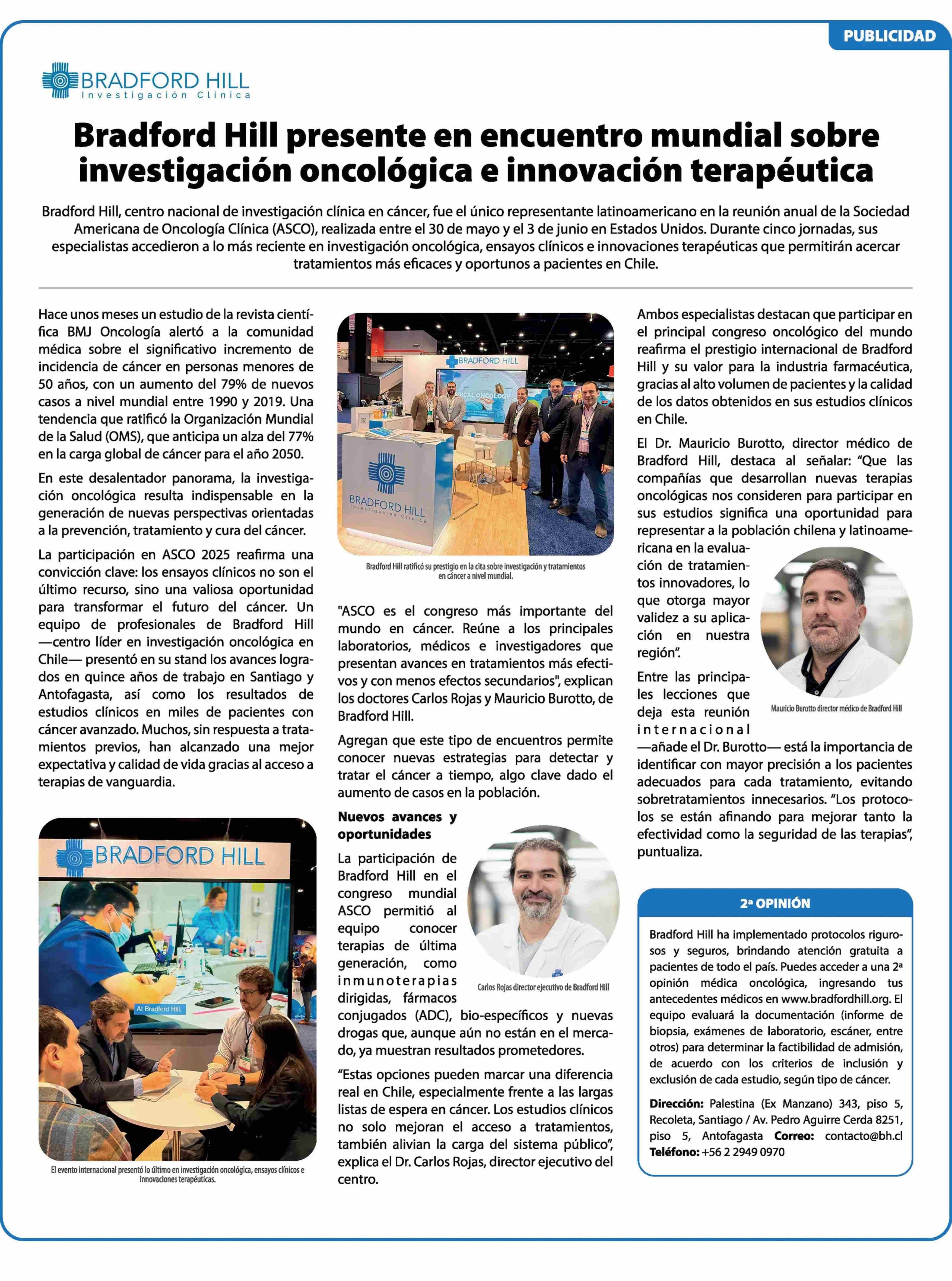 Bradford Hill presente en encuentro mundial sobre investigación oncológica e innovación terapéutica