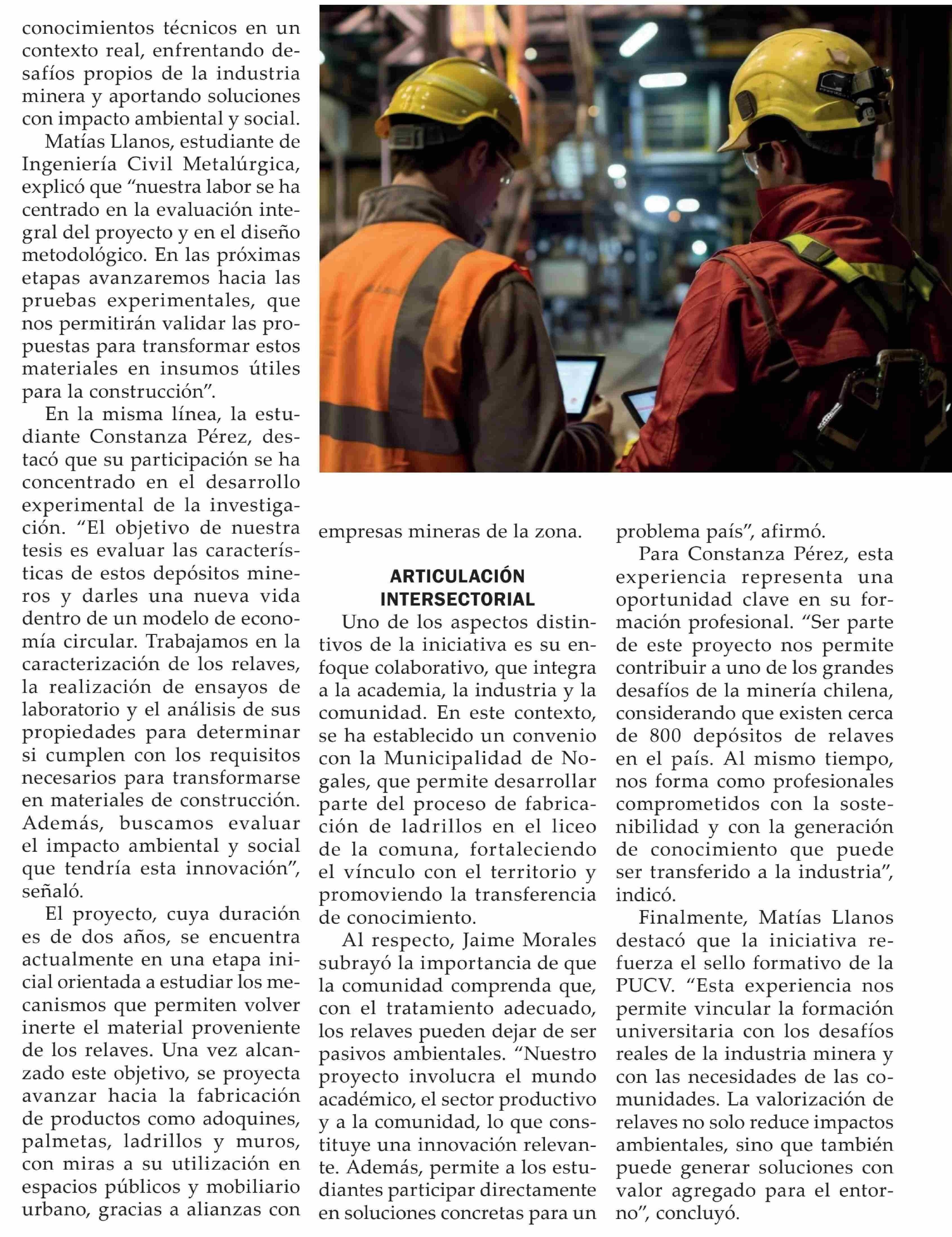 Estudiantes participan en proyecto que transforma relaves mineros en materiales de construcción