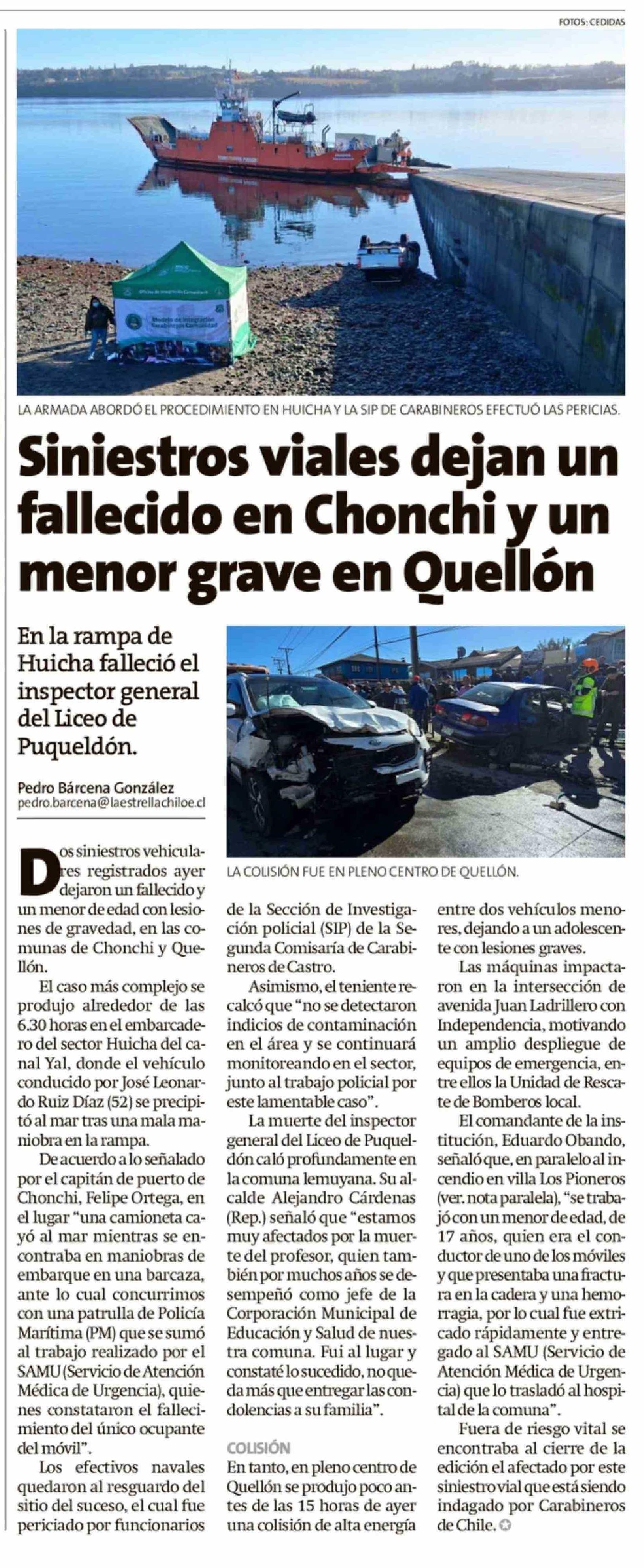 Siniestros viales dejan un fallecido en Chonchi y un menor grave en Quellón