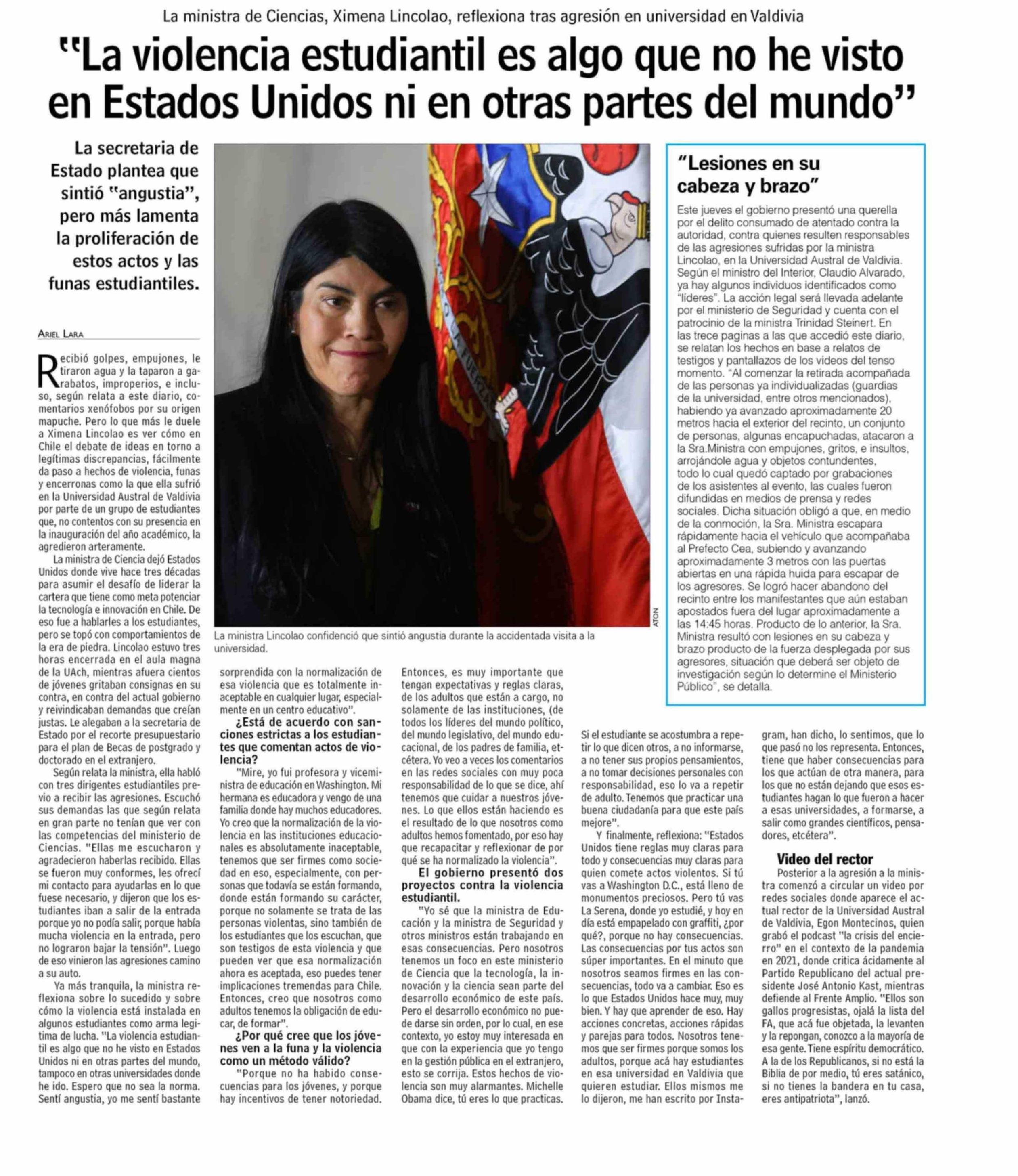 "La violencia estudiantil es algo que no he visto en Estados Unidos ni en otras partes del mundo"