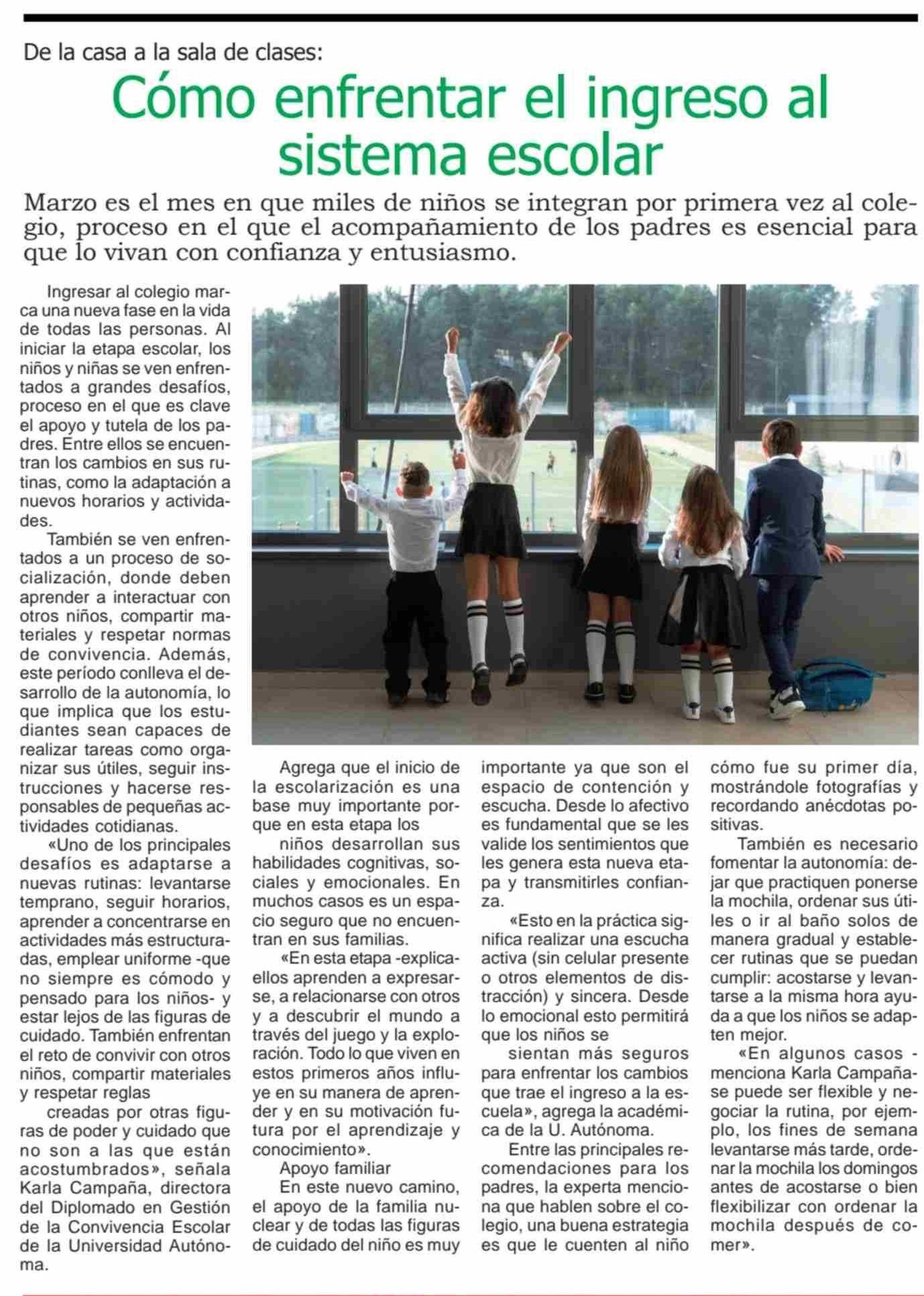 Cómo enfrentar el ingreso al sistema escolar