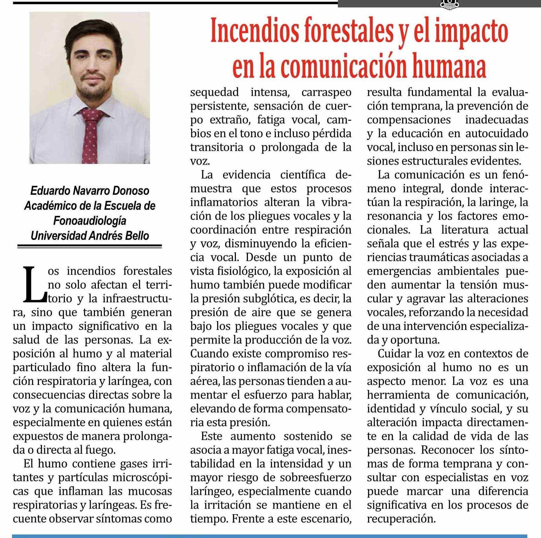 Título: Columnas de Opinión: Incendios forestales y el impacto en la comunicación humana