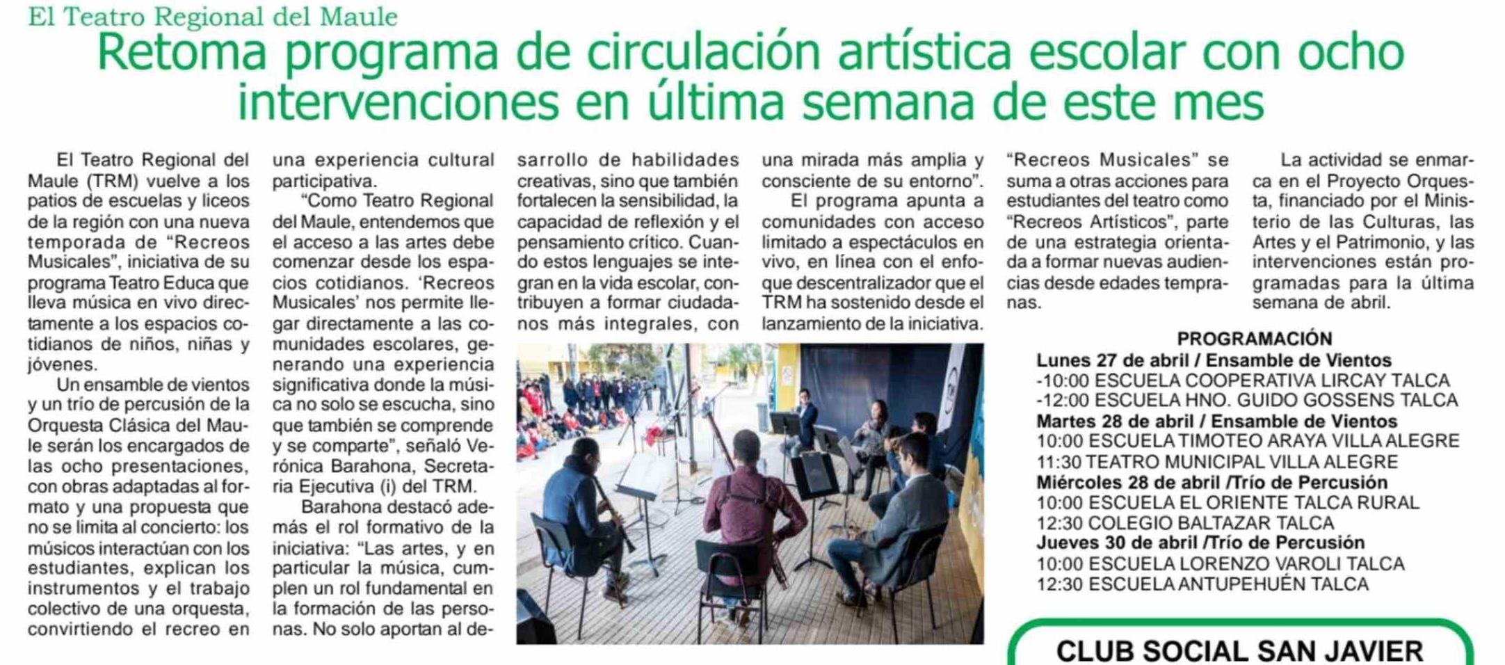 Retoma programa de circulación artística escolar con ocho intervenciones en última semana de este mes