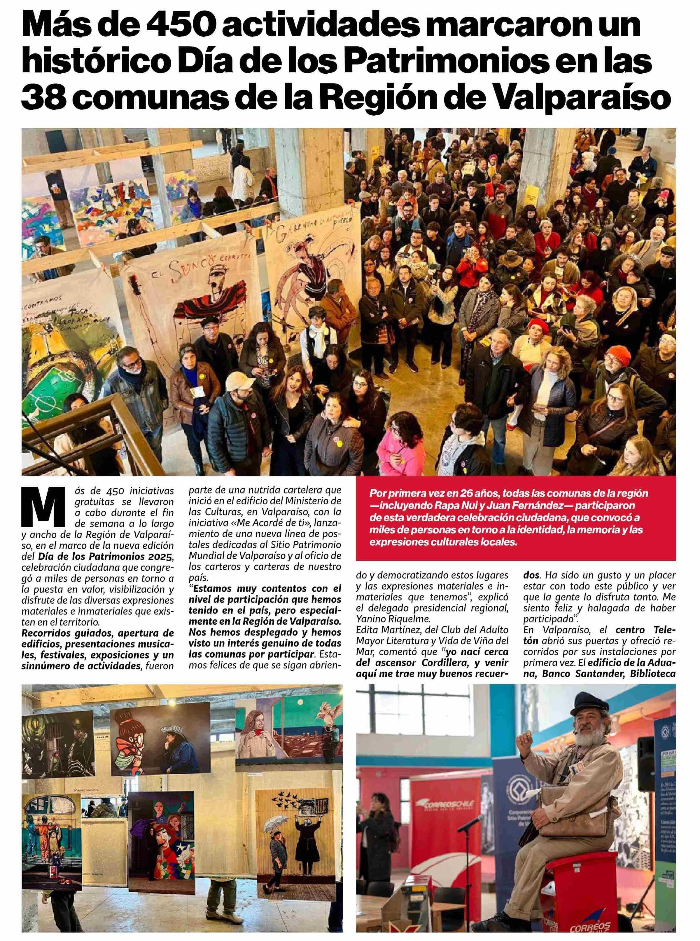 Más de 450 actividades marcaron un histórico Día de los Patrimonios en las 38 comunas de la Región de Valparaíso