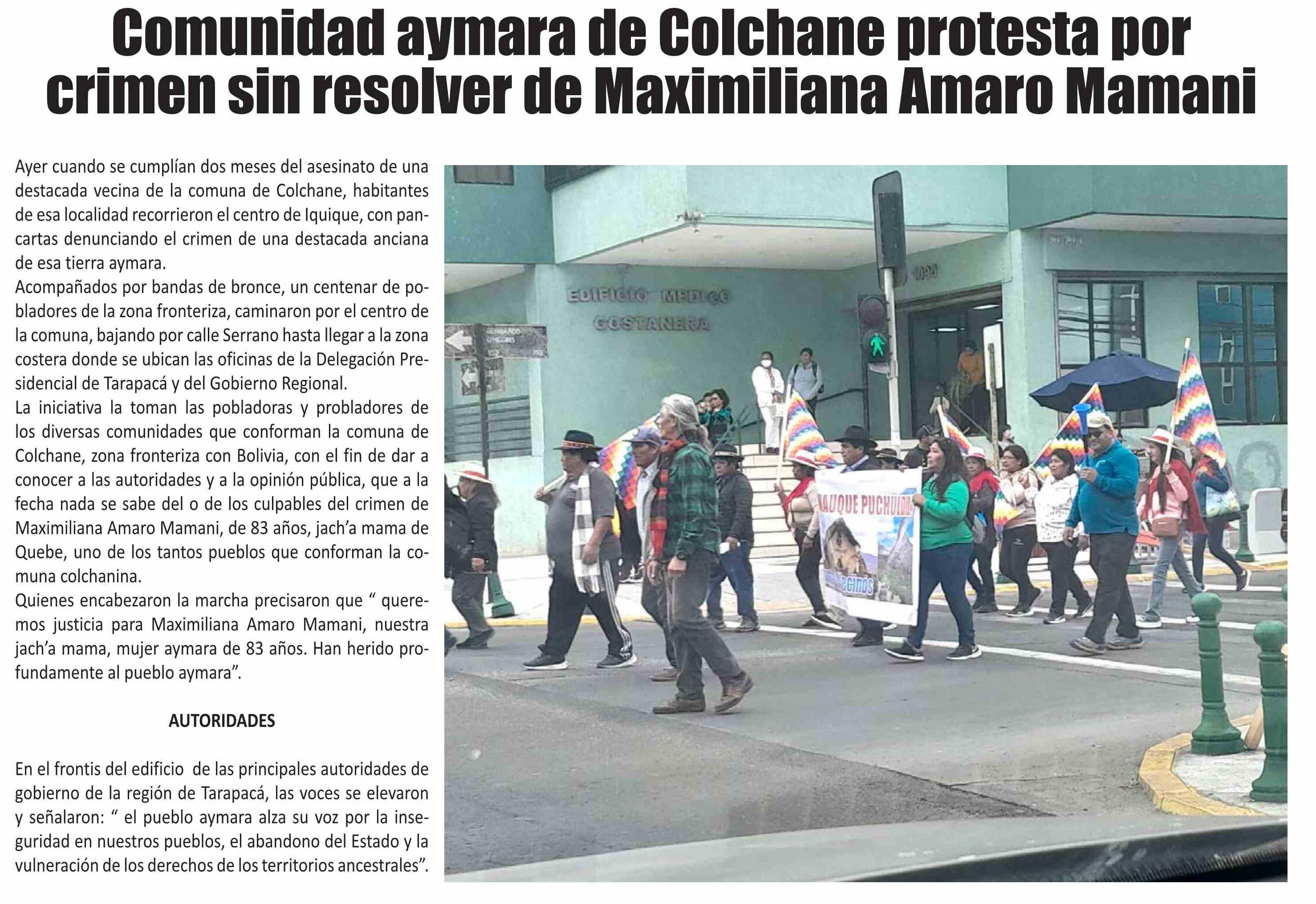 Comunidad aymara de Colchane protesta por crimen sin resolver de Maximiliana Amaro Mamani