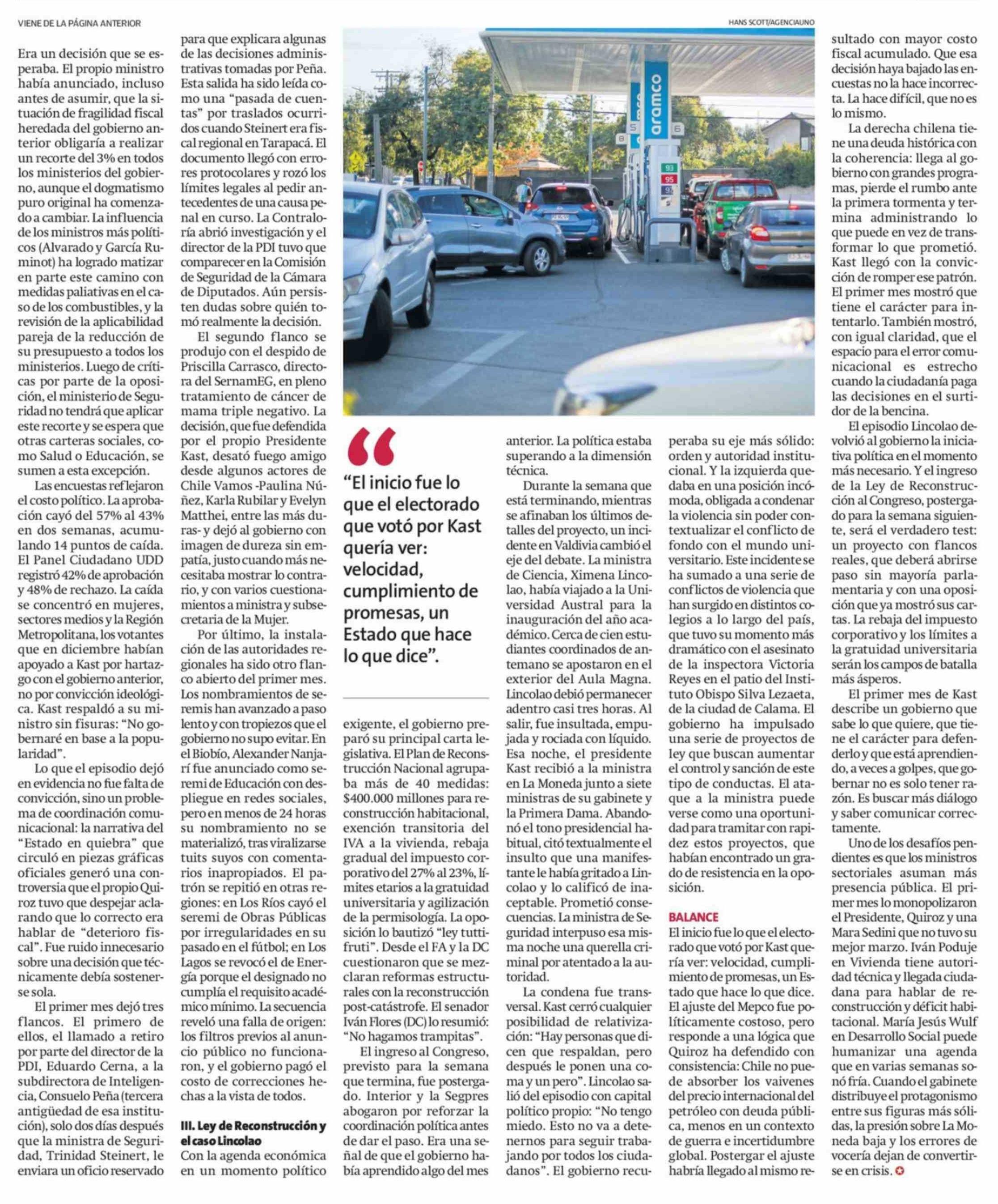 Primer mes de Kast: el inicio, el Mepco y el regreso de la política