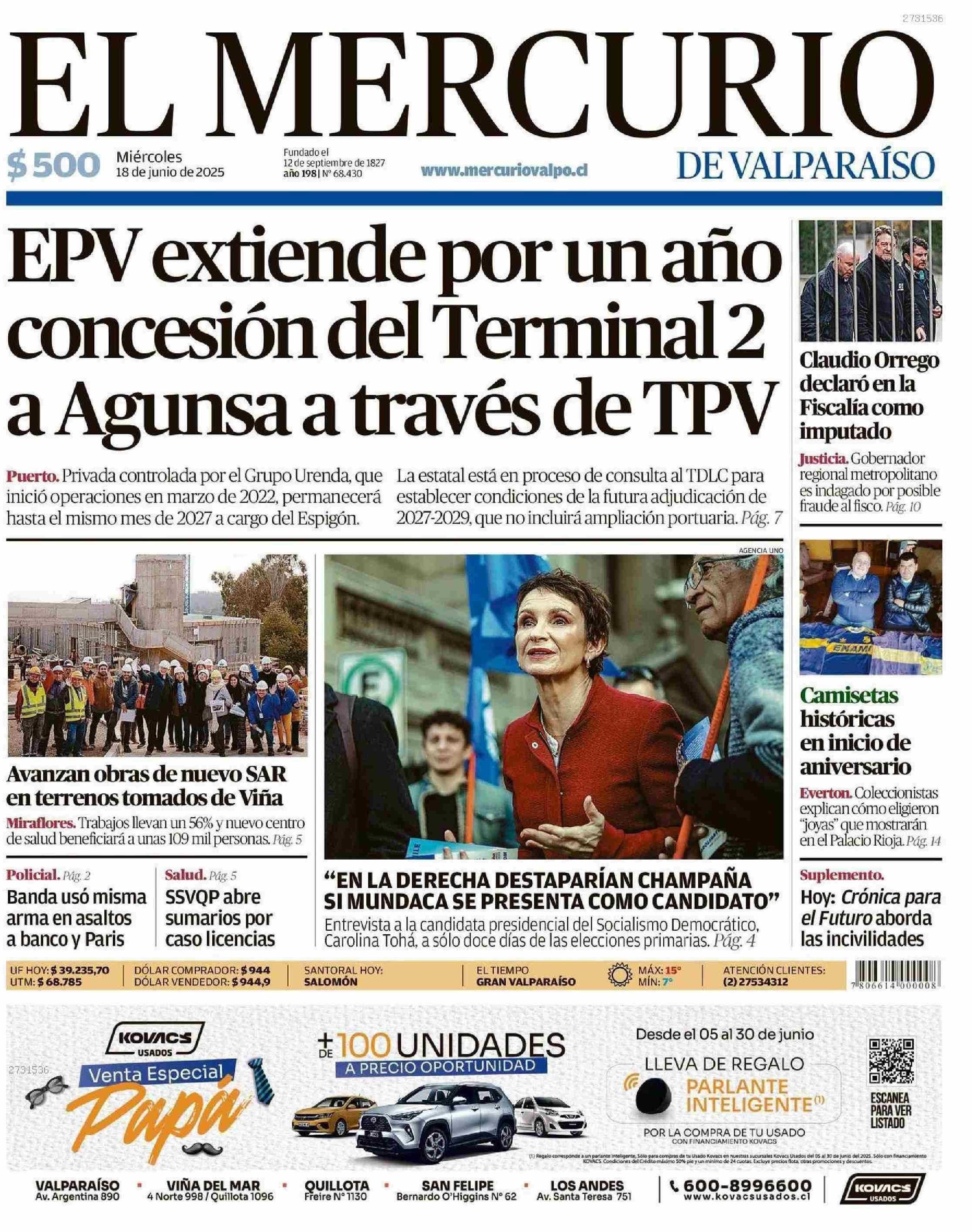 PORTADA EL MERCURIO DE VALPARAÍSO - CHILE