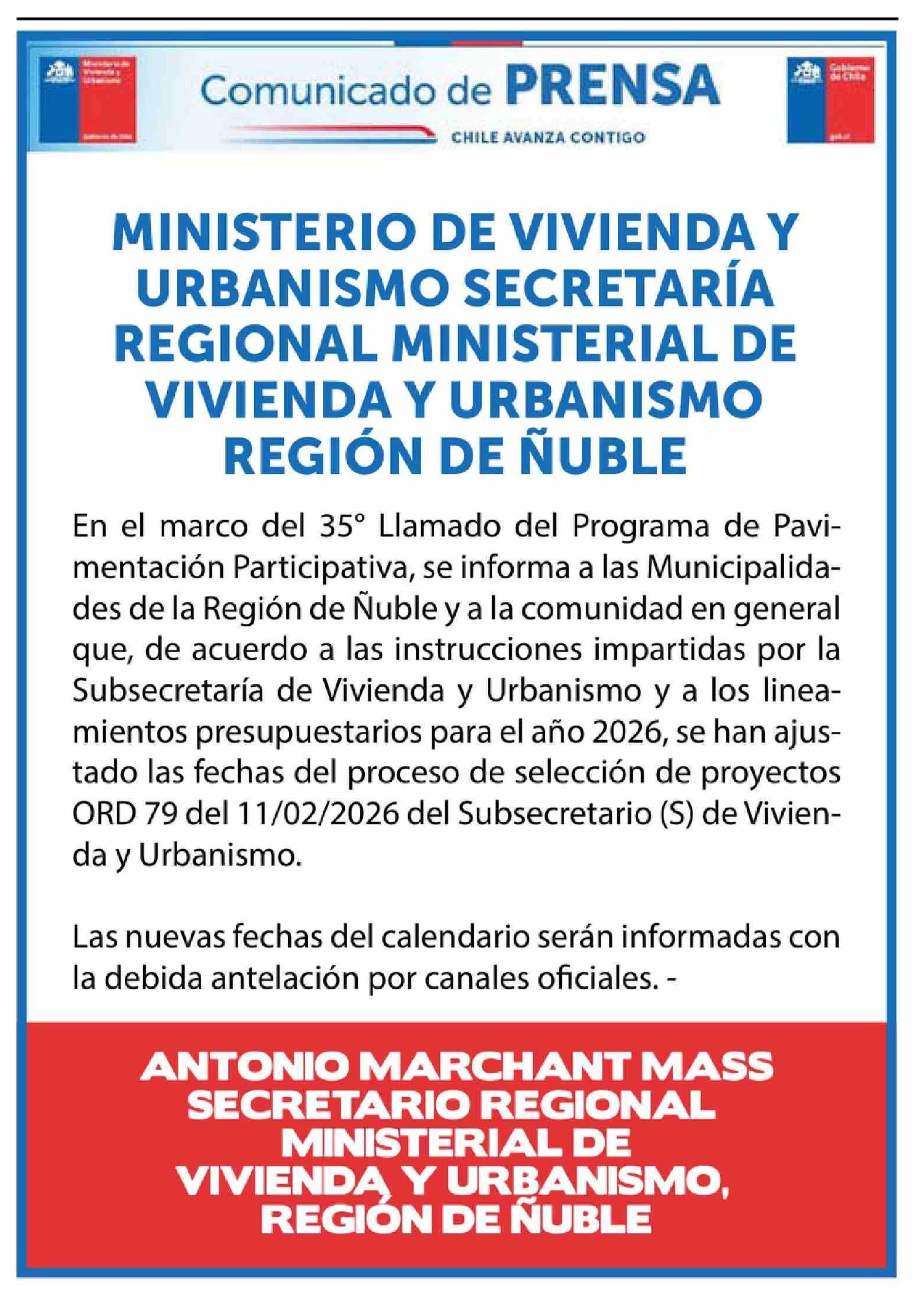 Extractos: MINISTERIO DE VIVIENDA Y URBANISMO SECRETARÍA REGIONAL MINISTERIAL DE VIVIENDA Y URBANISMO REGIÓN DE ÑUBLE