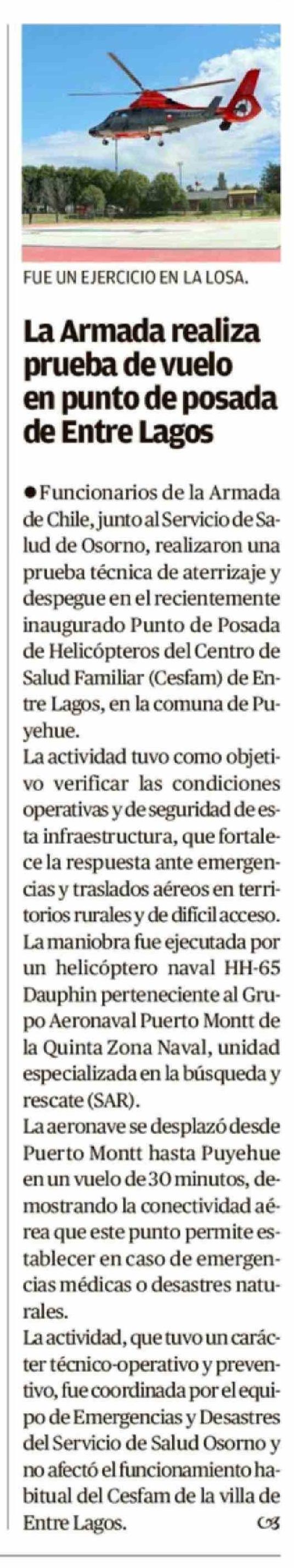La Armada realiza prueba de vuelo en punto de posada de Entre Lagos