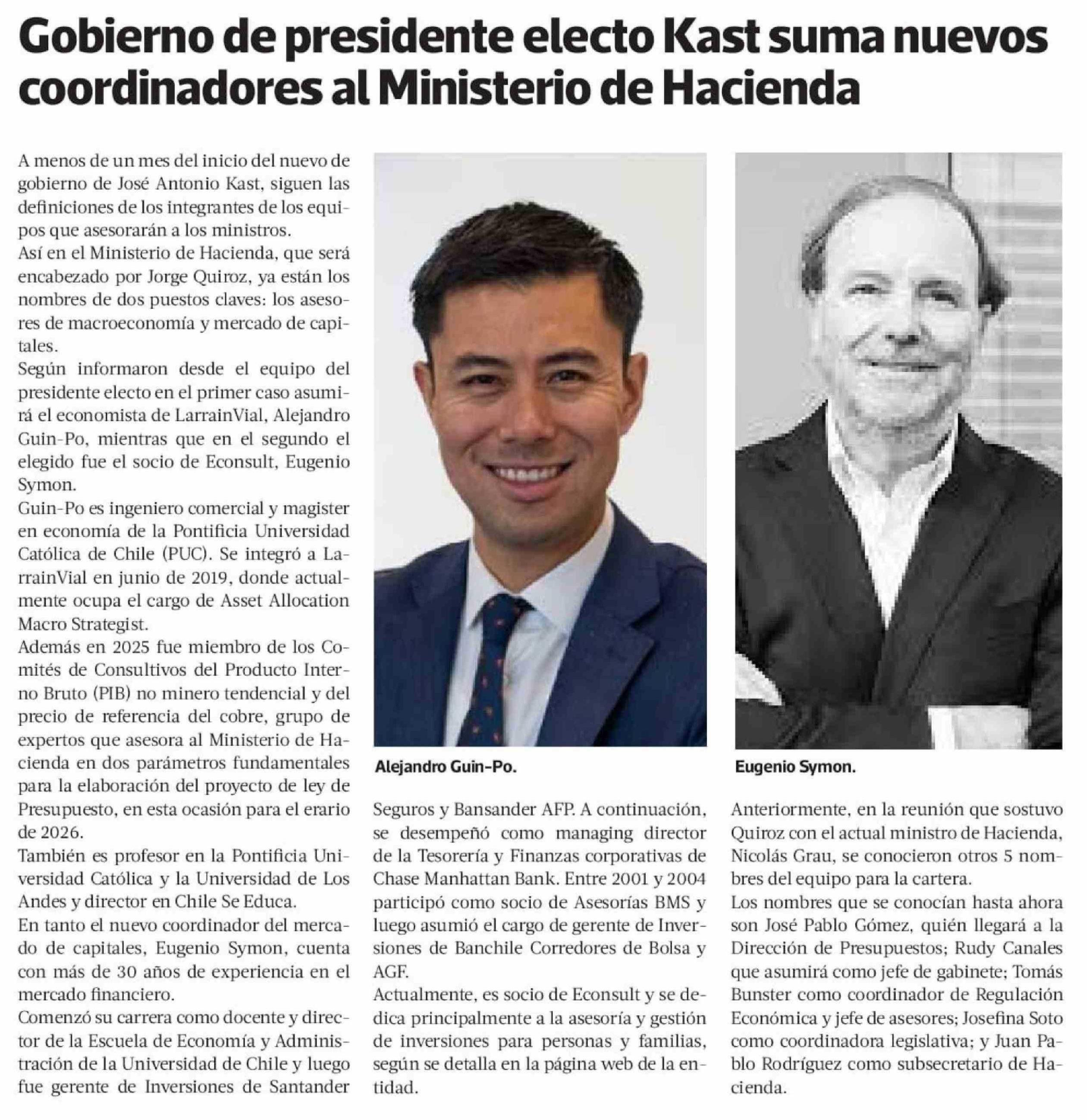 Gobierno de presidente electo Kast suma nuevos coordinadores al Ministerio de Hacienda