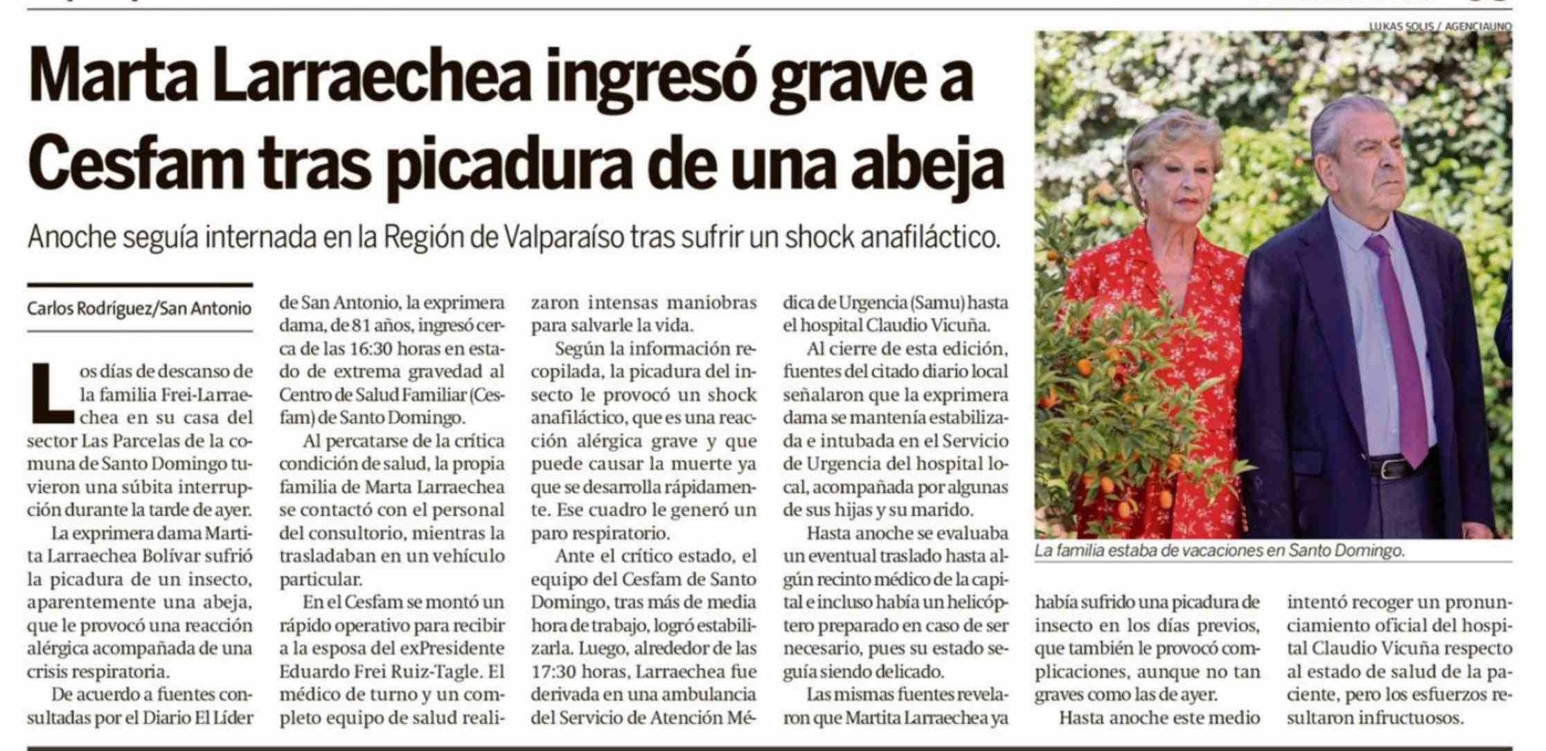 Título: Marta Larraechea ingreso grave a Cesfam tras picadura de una abeja