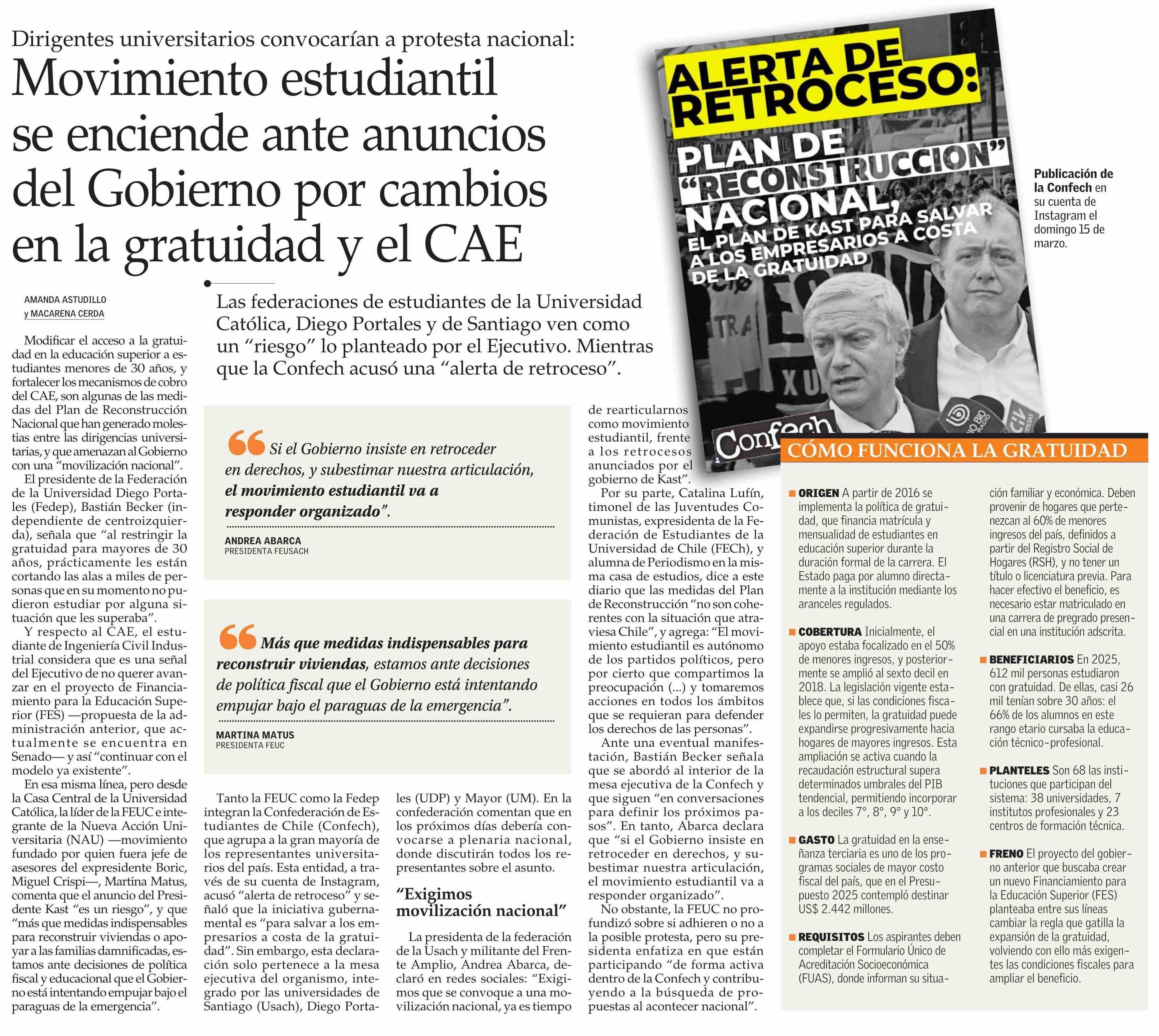 Movimiento estudiantil se enciende ante anuncios del Gobierno por cambios en la gratuidad y el CAE