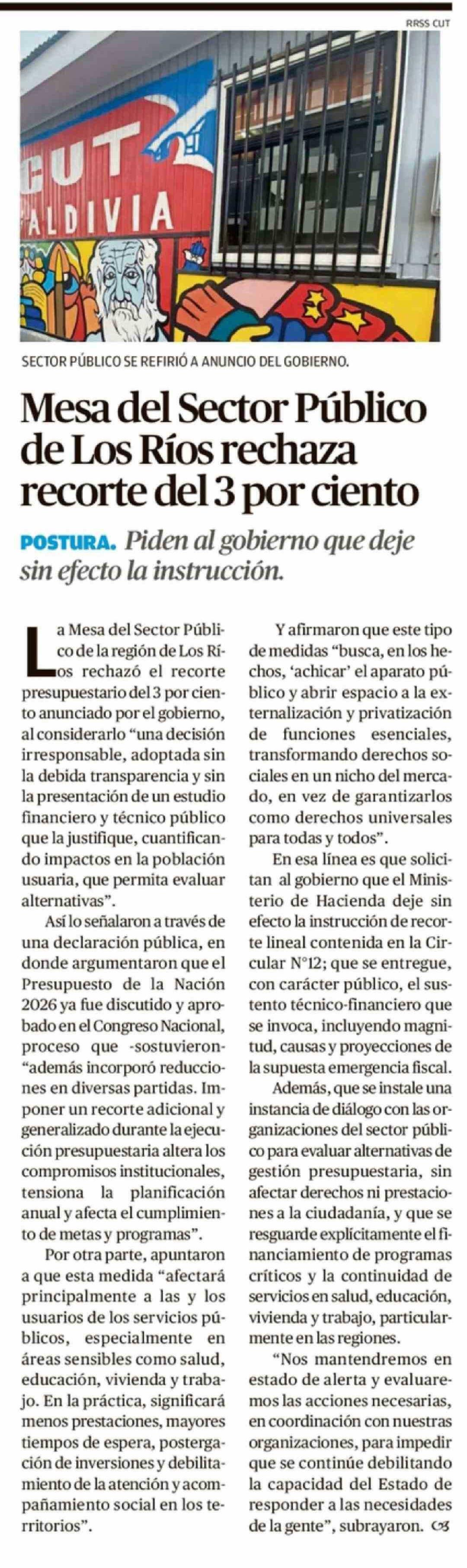 Mesa del Sector Público de Los Ríos rechaza recorte del 3 por ciento