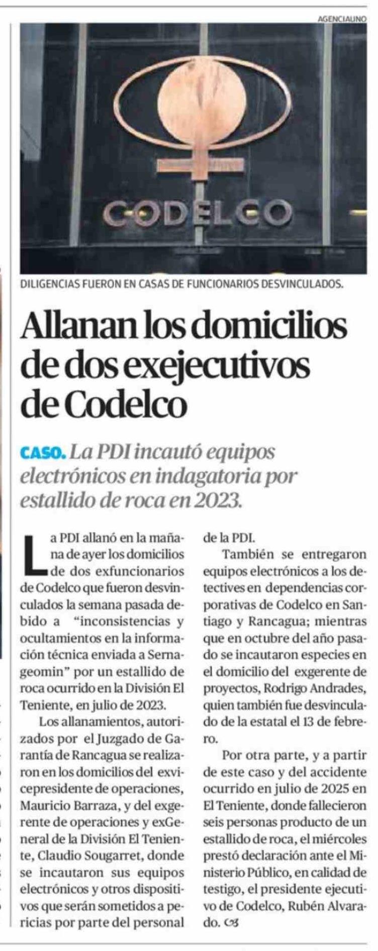 Allanan los domicilios de dos exejecutivos de Codelco