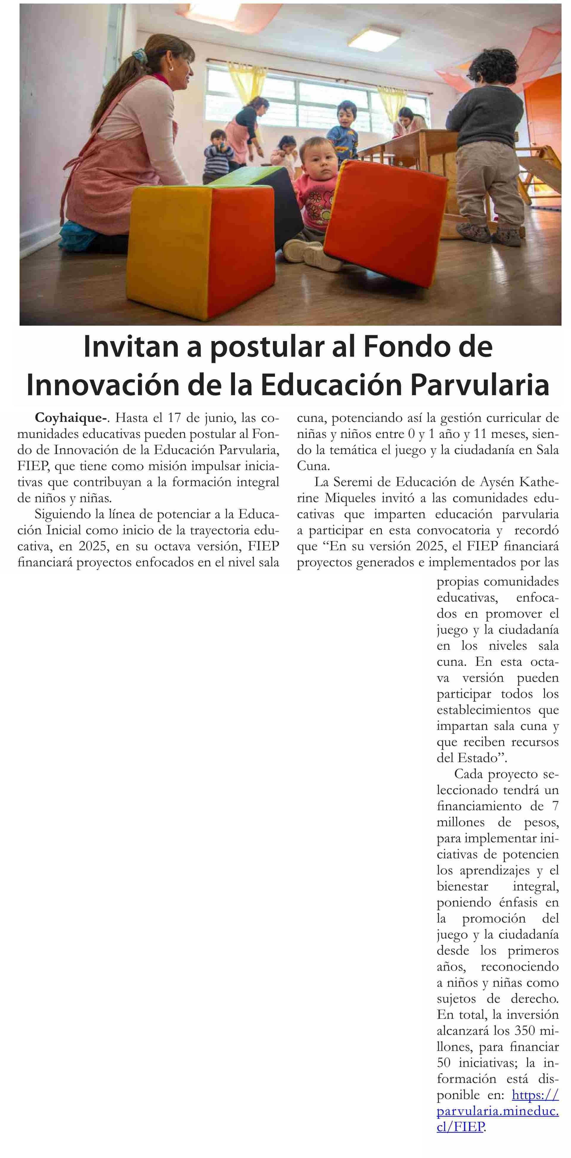 Invitan a postular al Fondo de Innovación de la Educación Parvularia