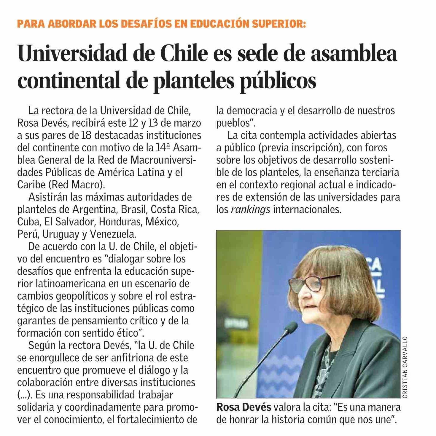 Universidad de Chile es sede de asamblea continental de planteles públicos