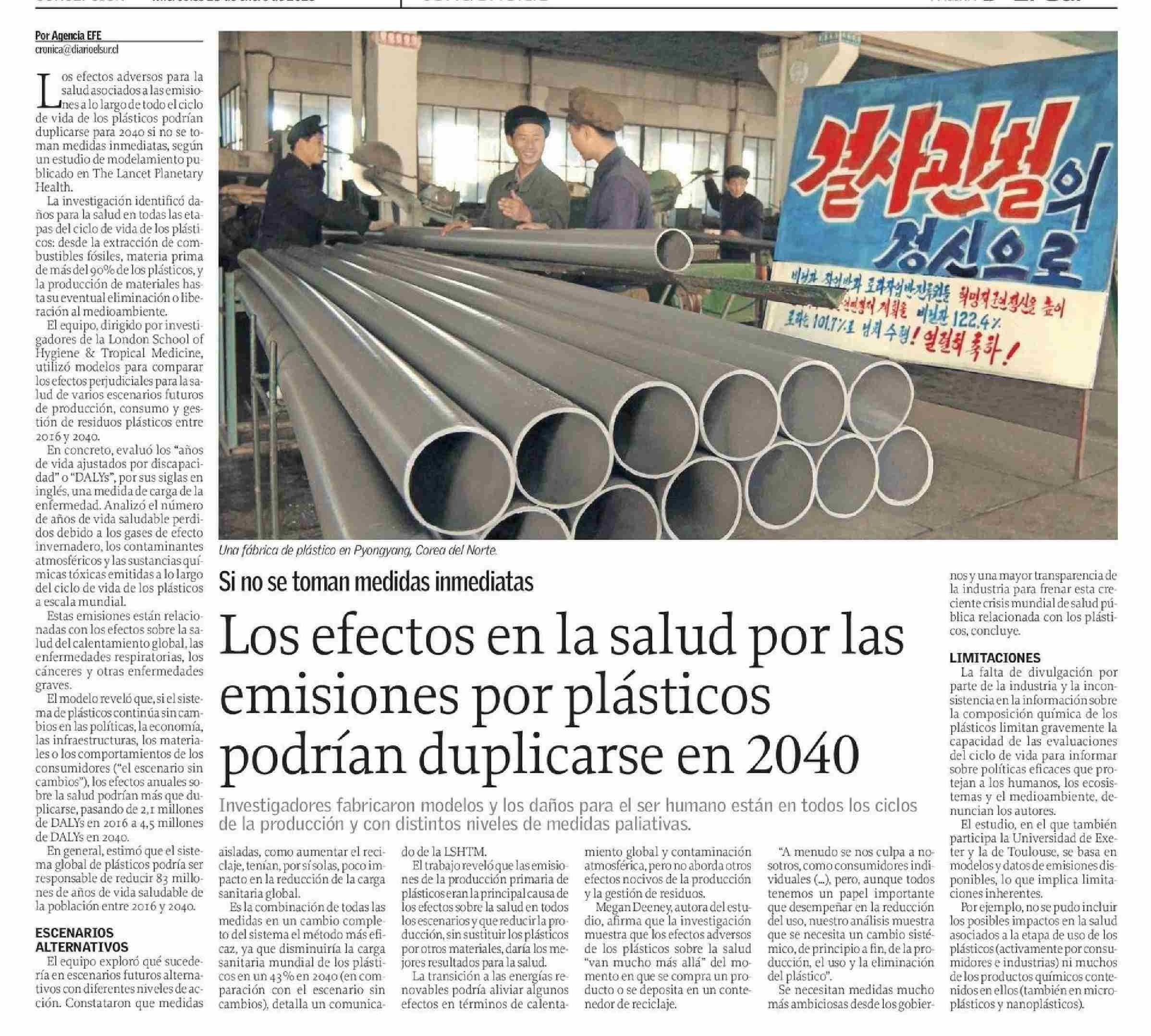 Los efectos en la salud por las emisiones por plásticos podrían duplicarse en 2040