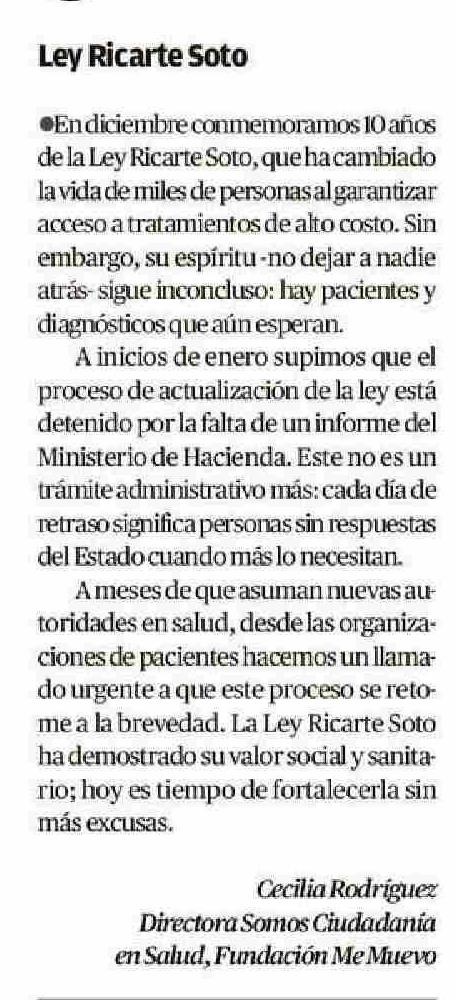 Cartas: Cecilia Rodríguez Directora Somos Ciudadanía en Salud, Fundación Me Muevo