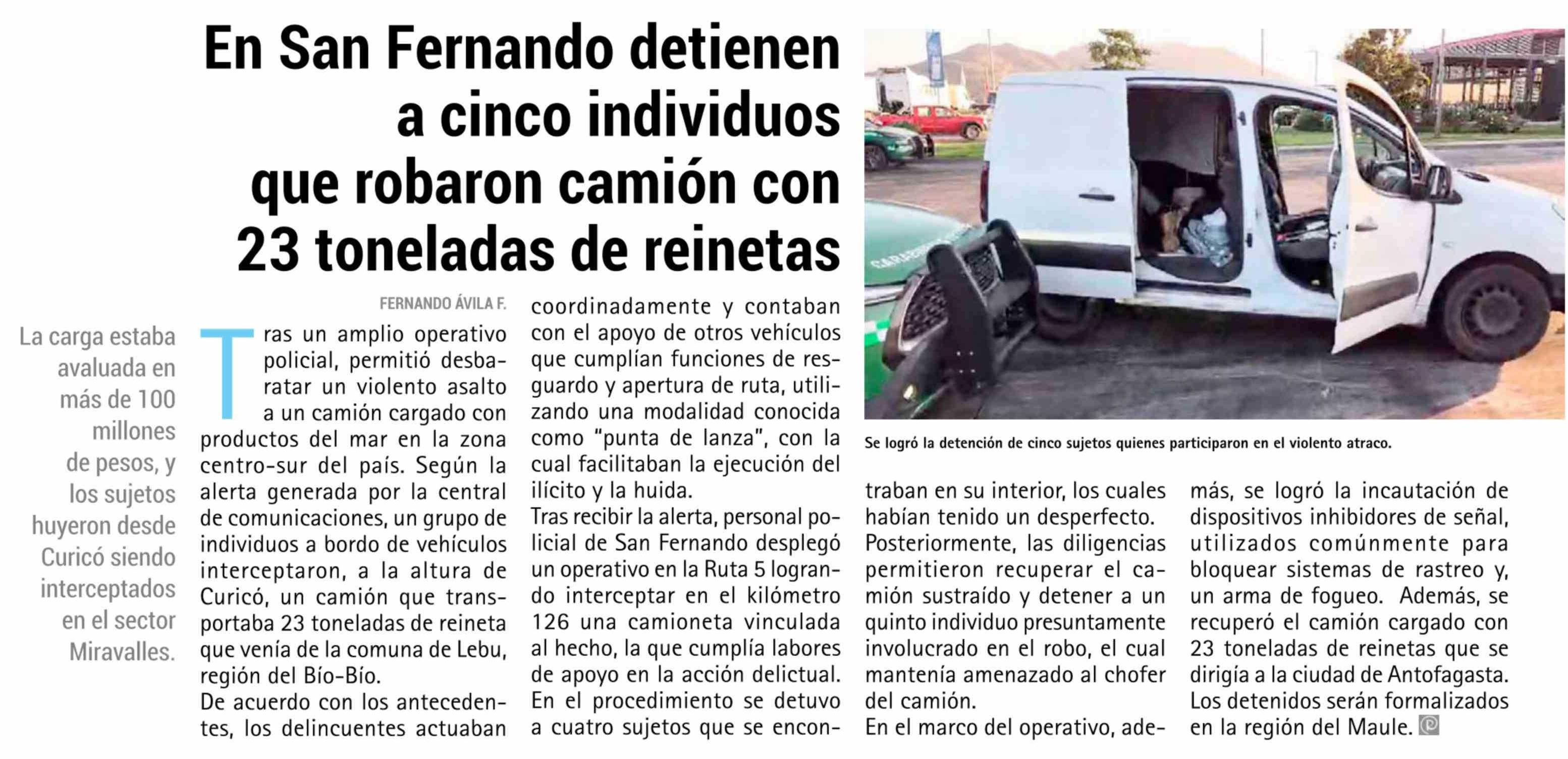 En San Fernando detienen a cinco individuos que robaron camión con 23 toneladas de reinetas