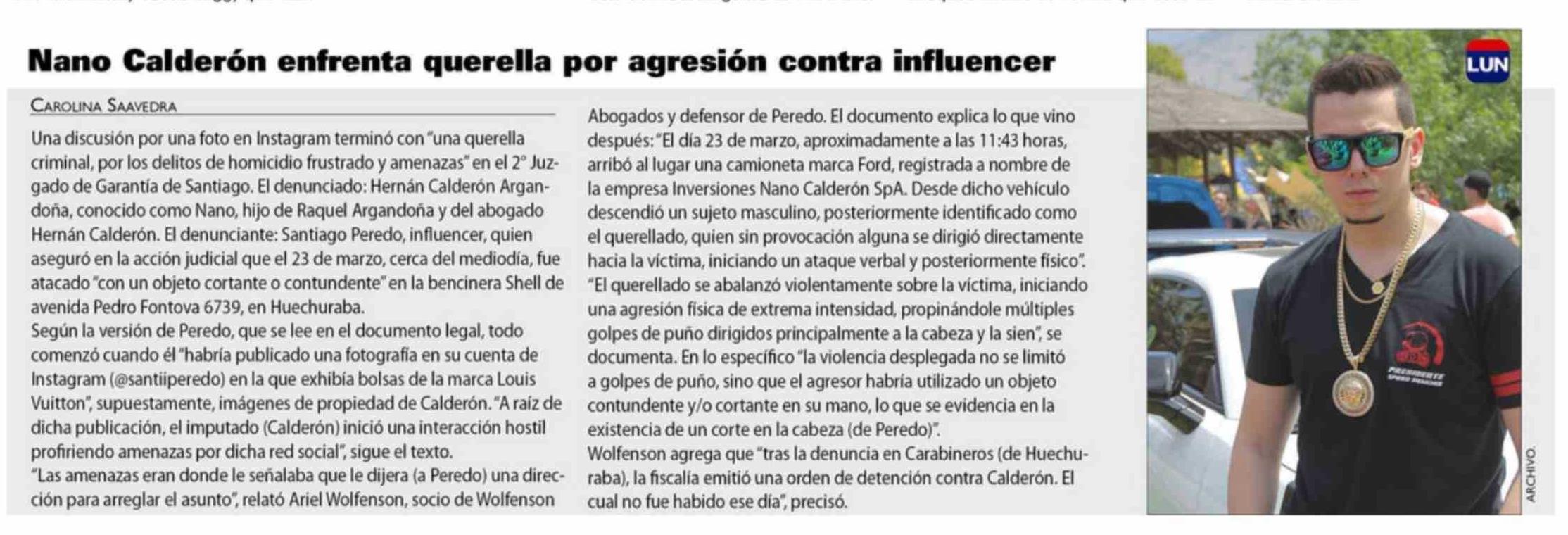 Nano Calderón enfrenta querella por agresión contra influencer