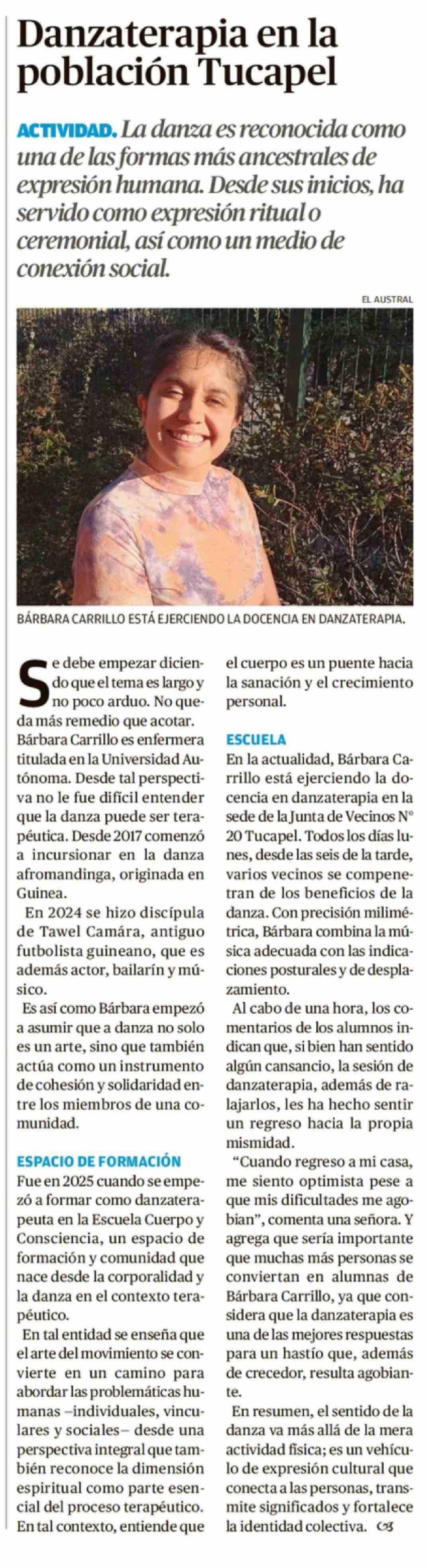 Danzaterapia en la población Tucapel