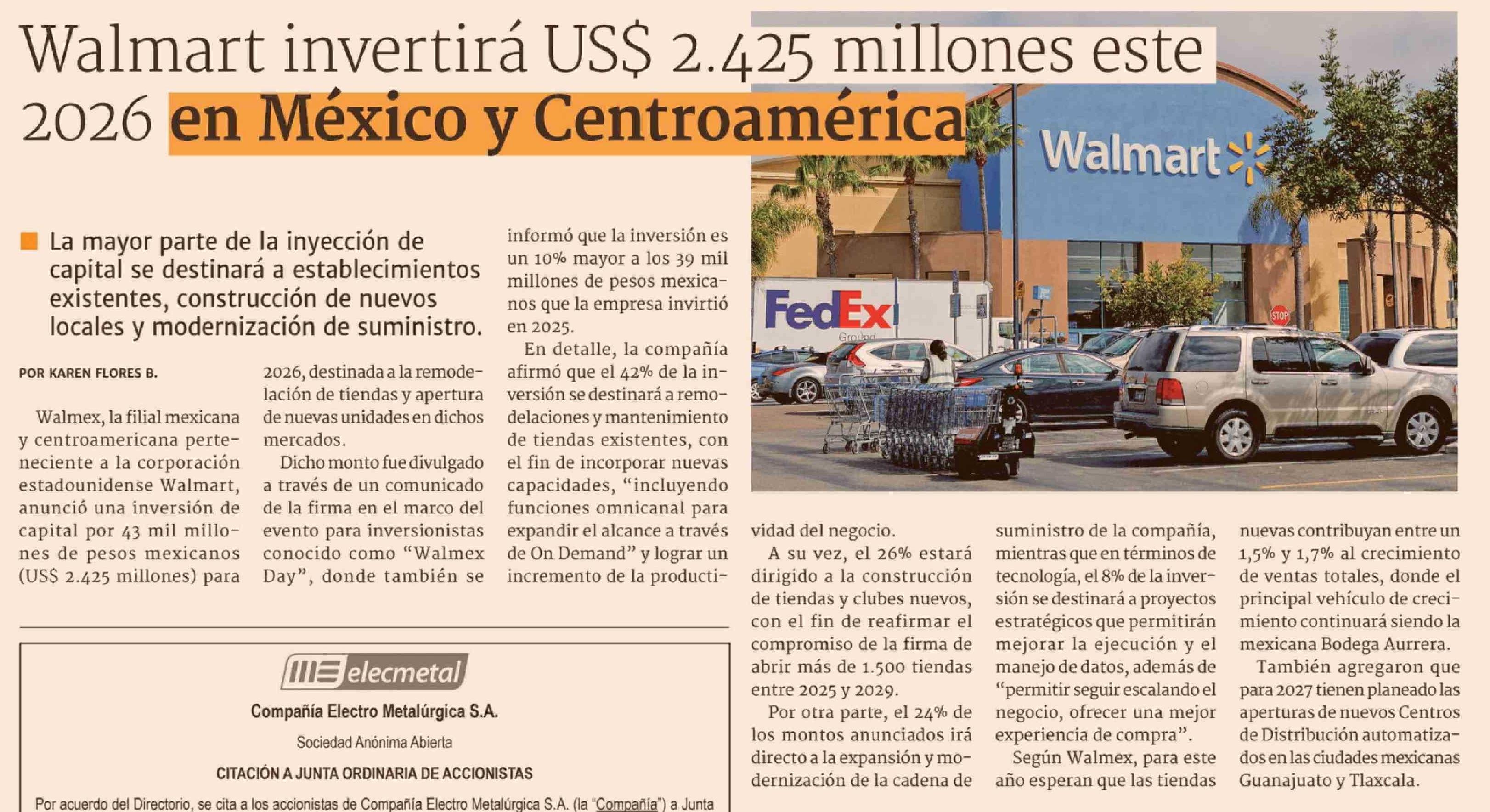 Walmart invertirá US$ 2.425 millones este 2026 en México y Centroamérica Walmart