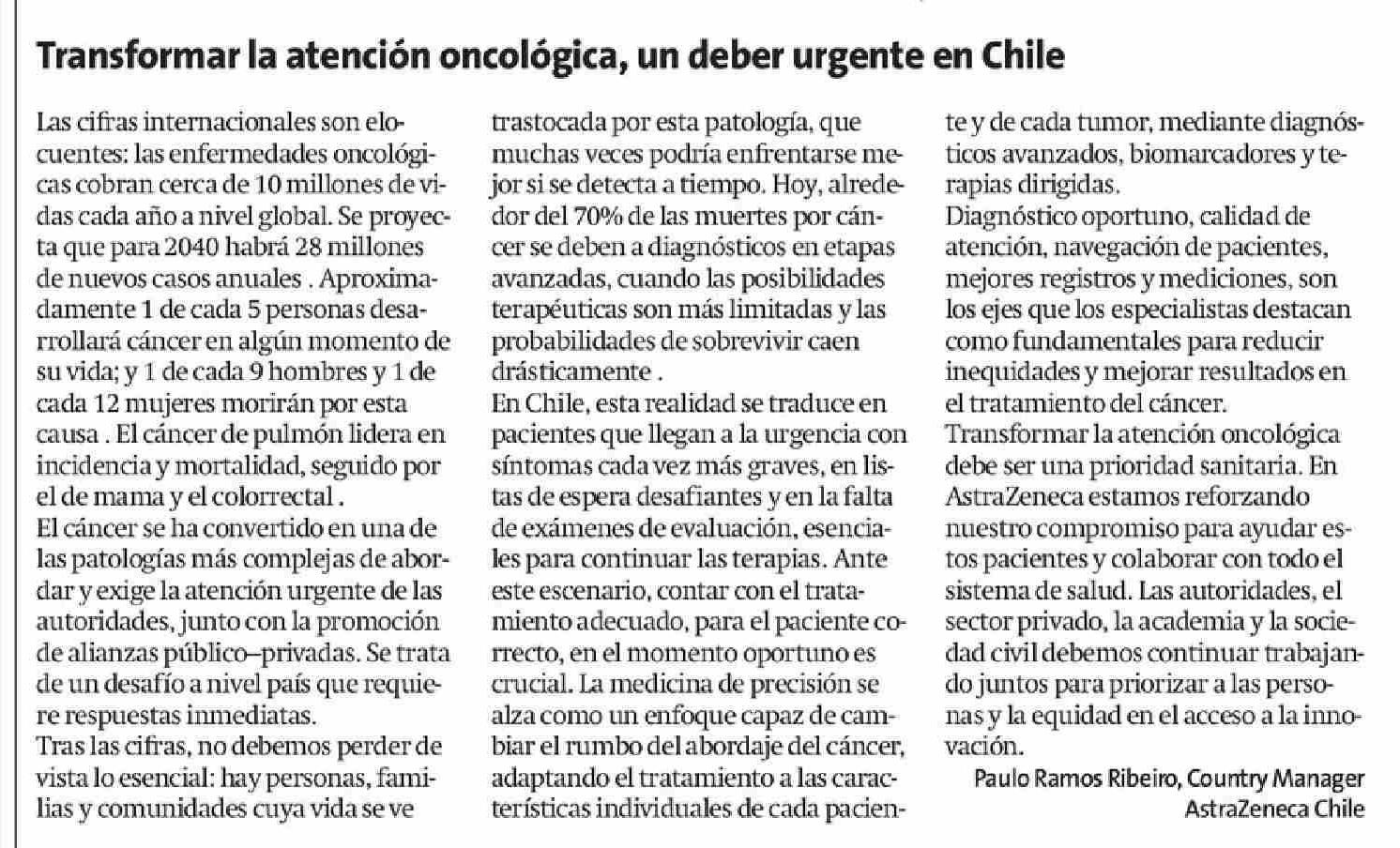 Columnas de Opinión: Transformar la atención oncológica, un deber urgente en Chile