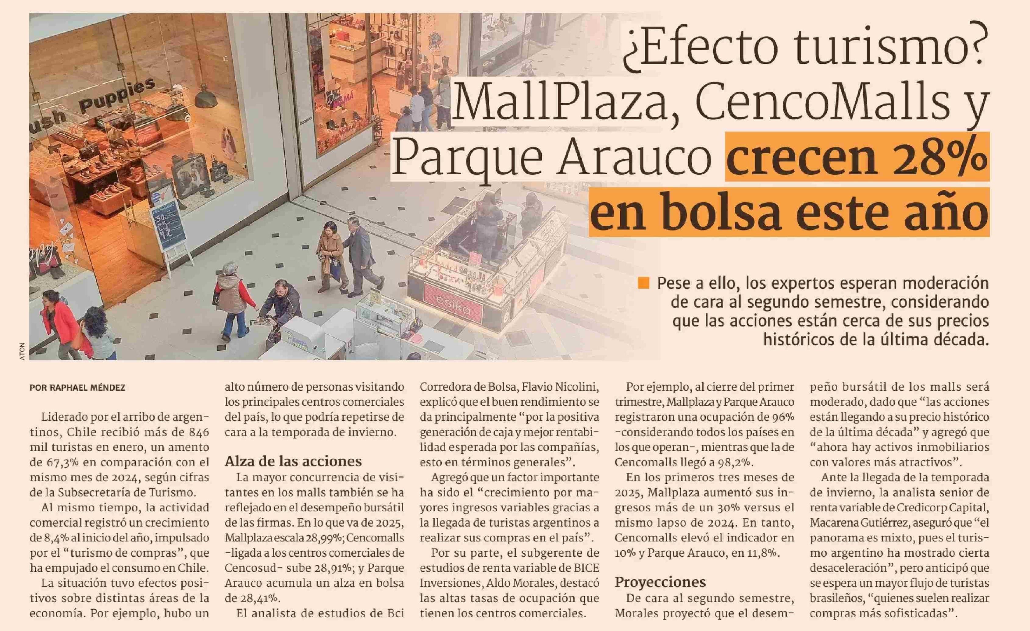 ¿Efecto turismo? MallPlaza, CencoMalls y Parque Arauco crecen 28% en bolsa este año