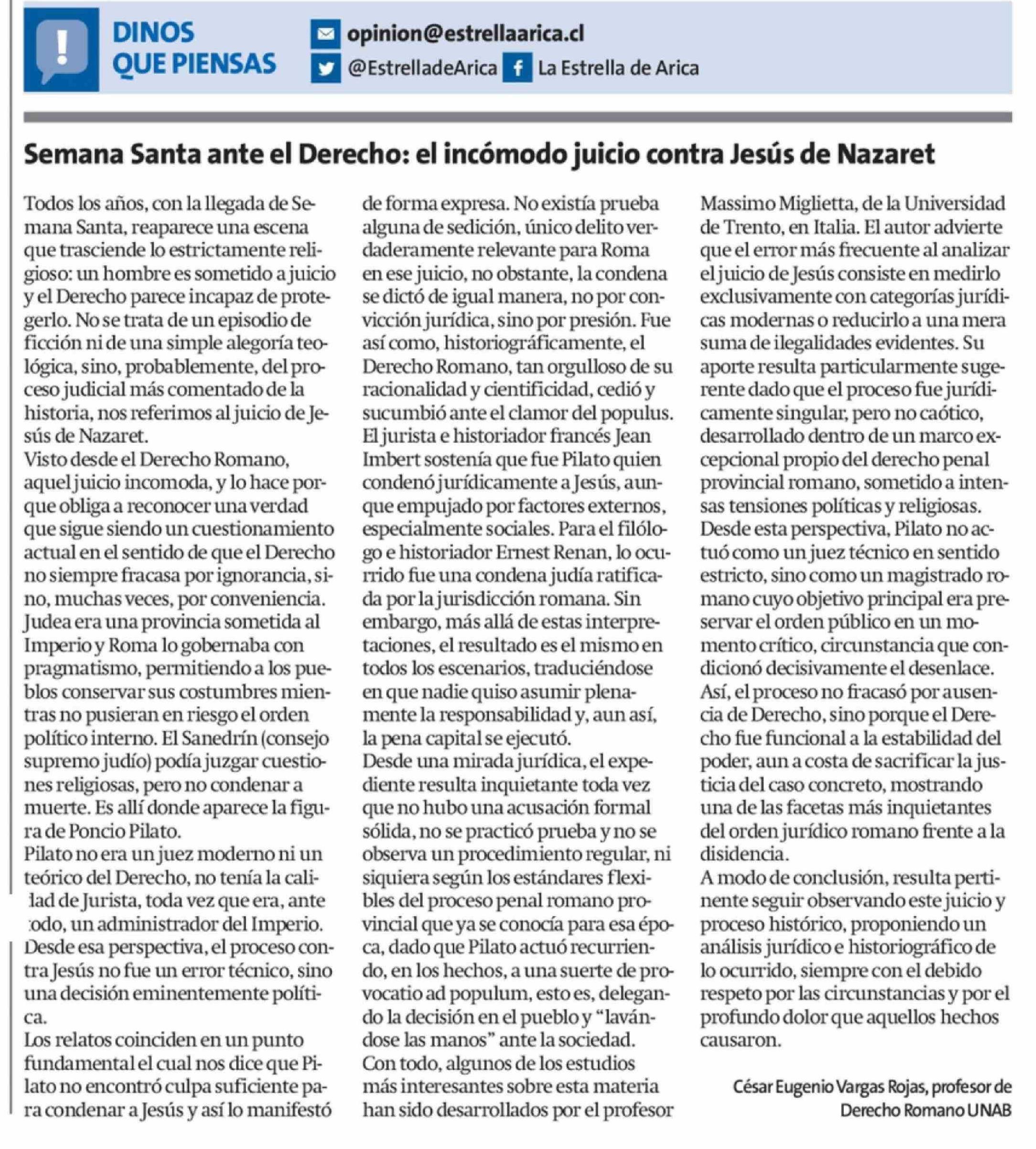 Columnas de Opinión: Semana Santa ante el Derecho: el incómodo juicio contra Jesús de Nazaret