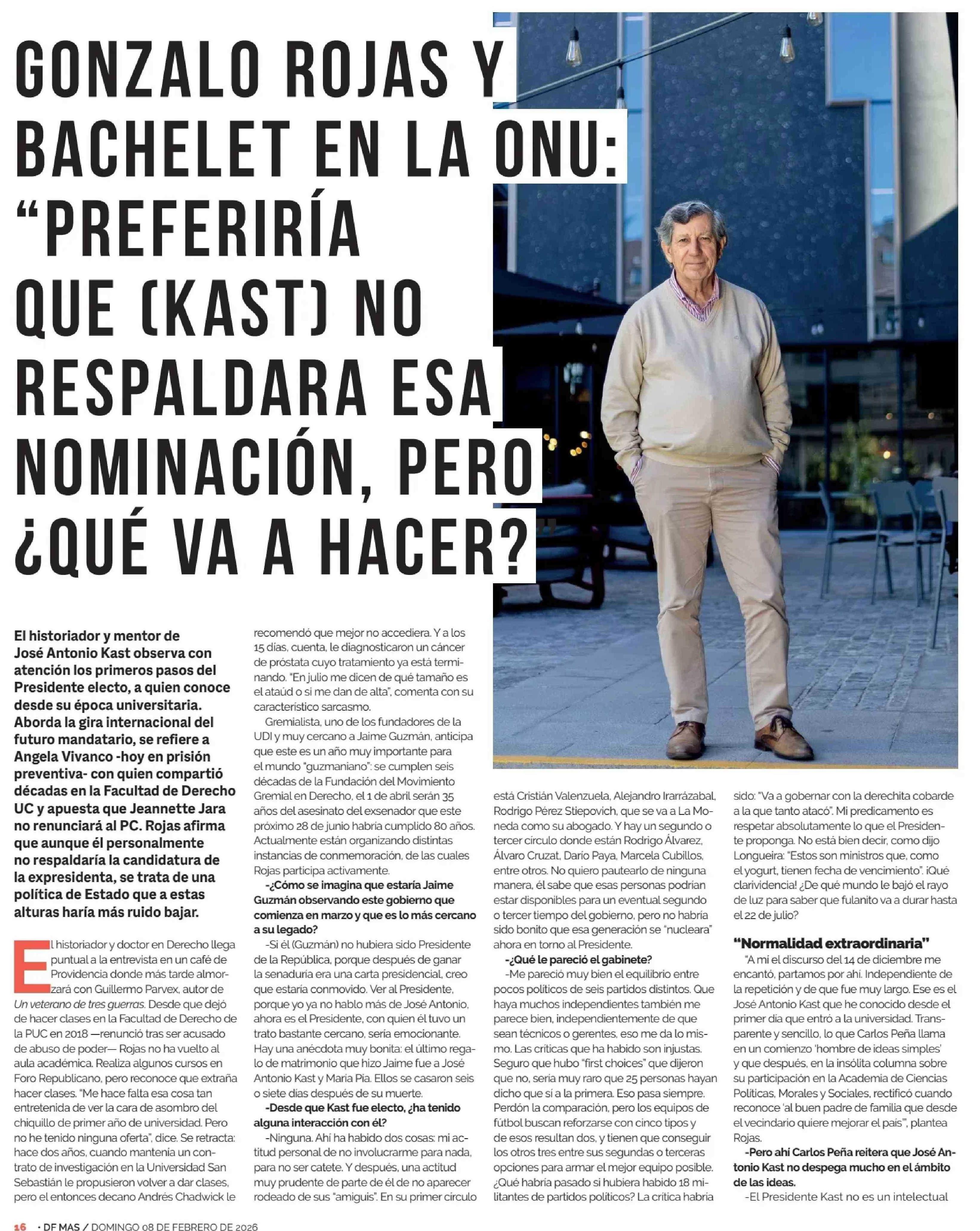 Título: GONZALO ROJAS Y BACHELET EN LA ONU: "PREFERIRÍA QUE (KAST) NO RESPALDARA ESA NOMINACIÓN, PERO ¿QUÉ VA A HACER?
