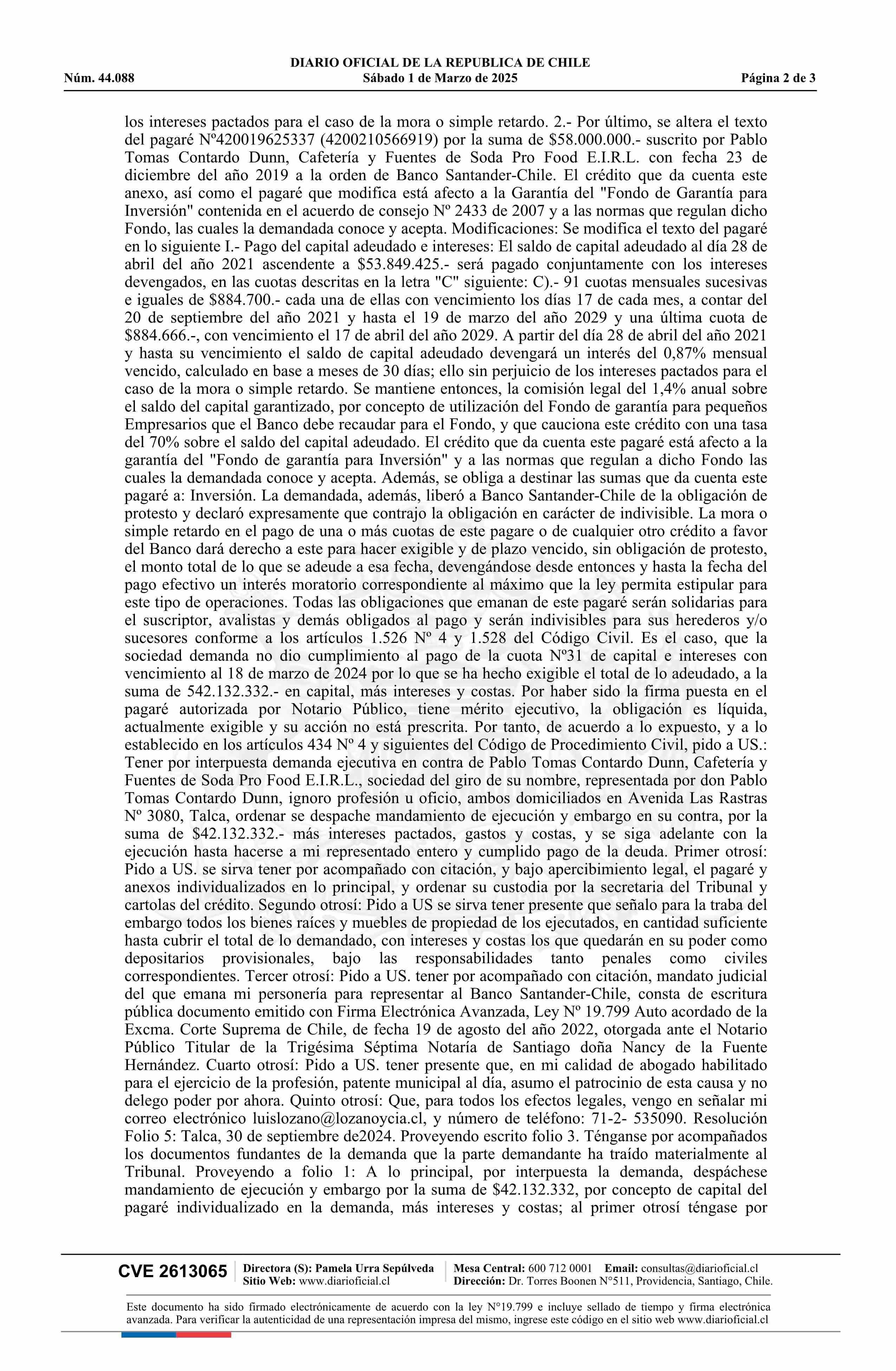 Banco Santander-Chile - Pro Food E.I.R.L.