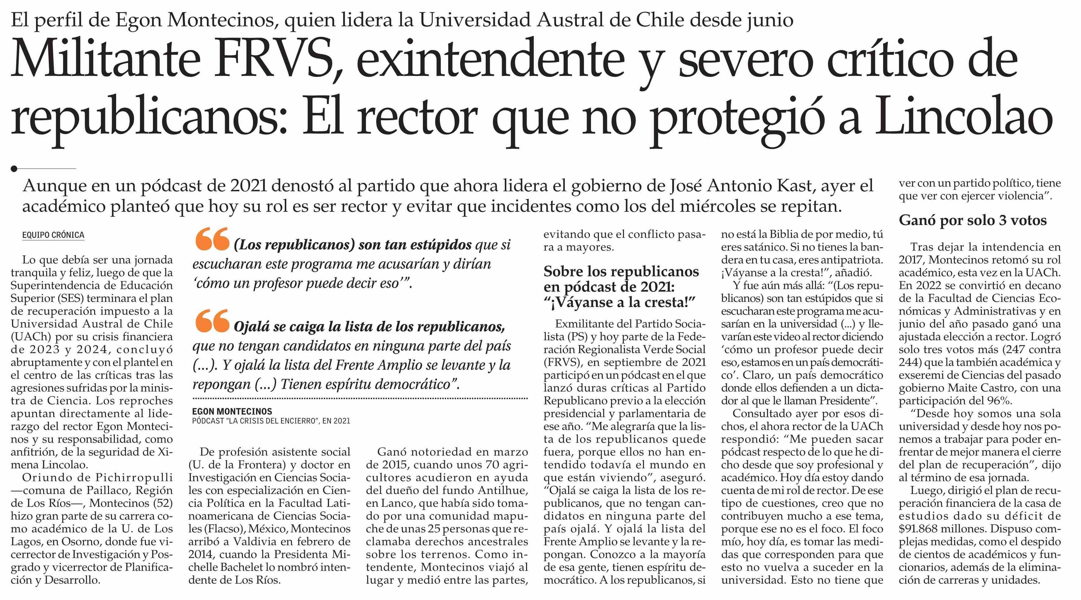 Militante FRVS, exintendente y severo crítico de republicanos: El rector que no protegió a Lincolao