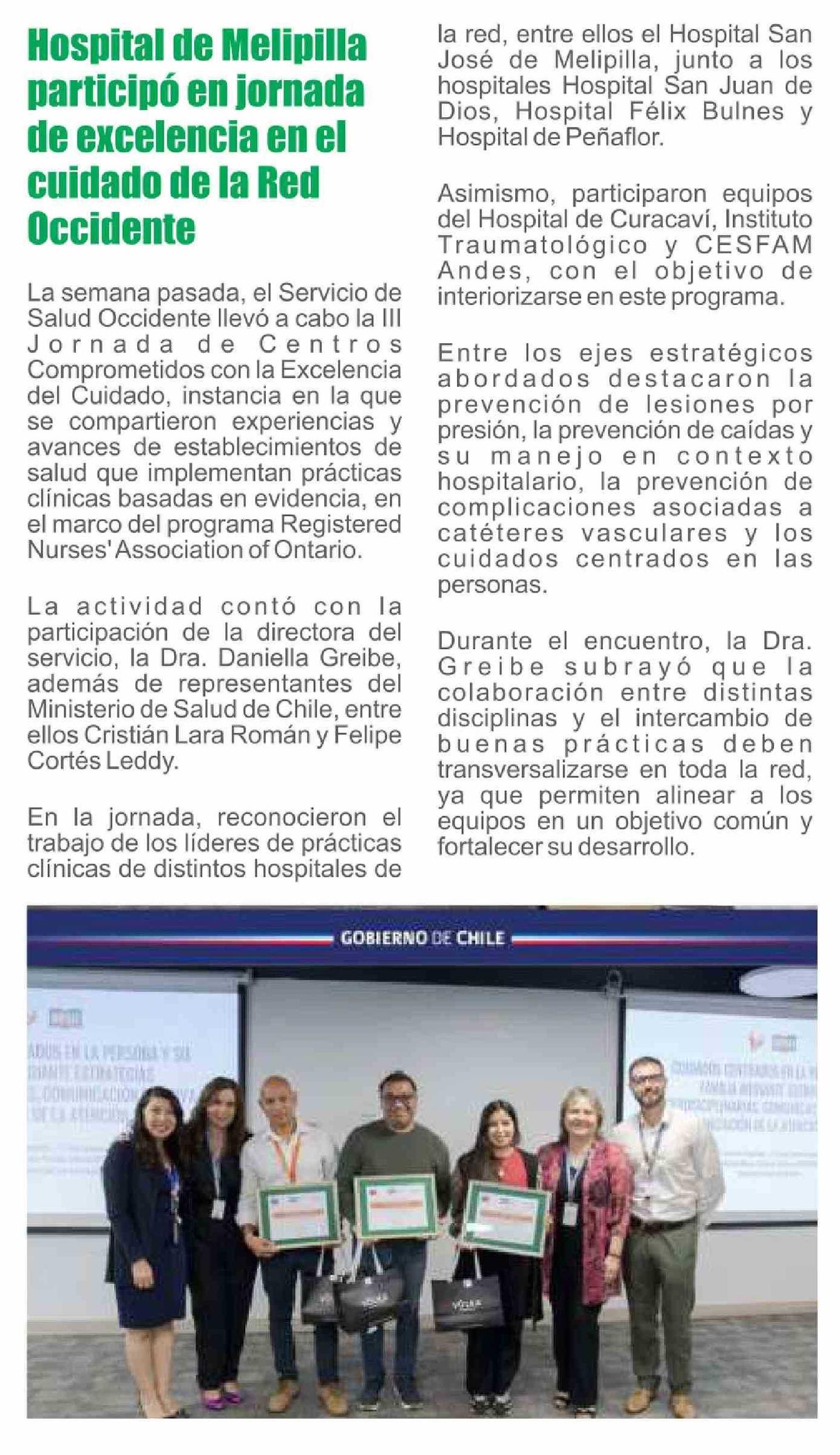 Título: Hospital de Melipilla participó en jornada de excelencia en el cuidado de la Red Occidente