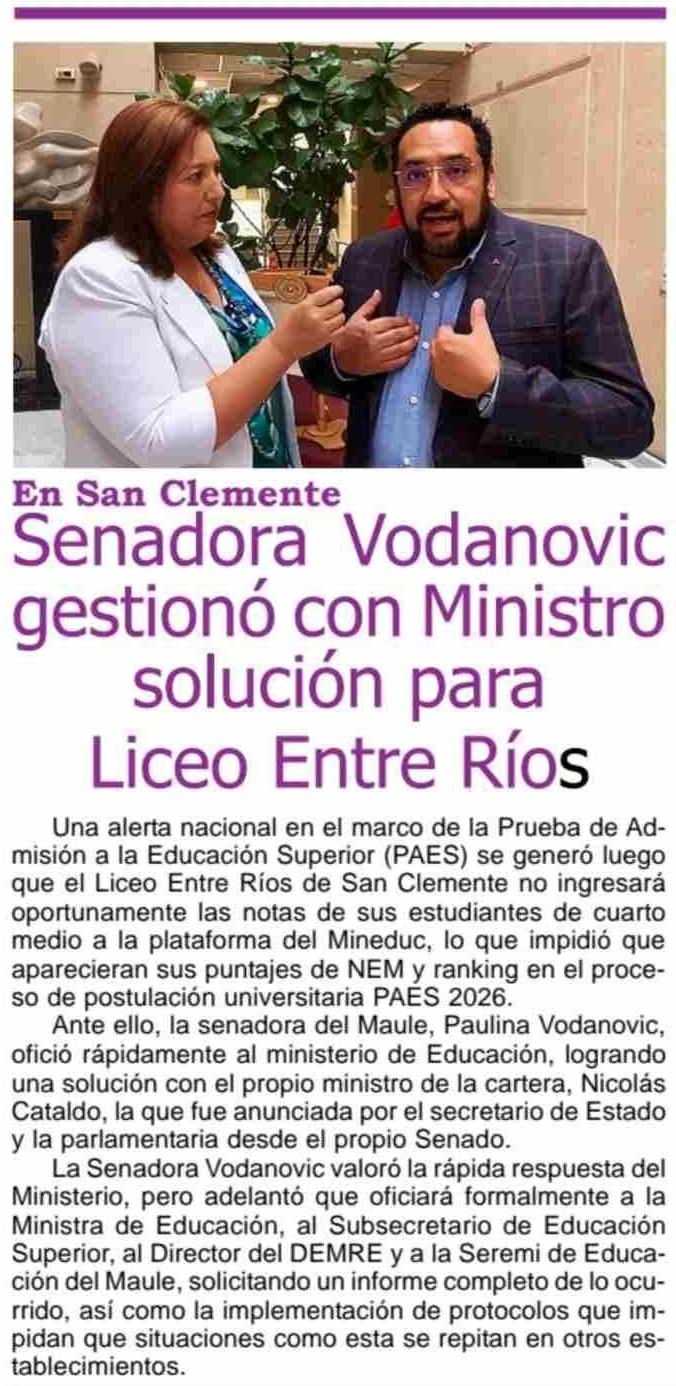 Senadora Vodanovic gestionó con Ministro solución para Liceo Entre Ríos