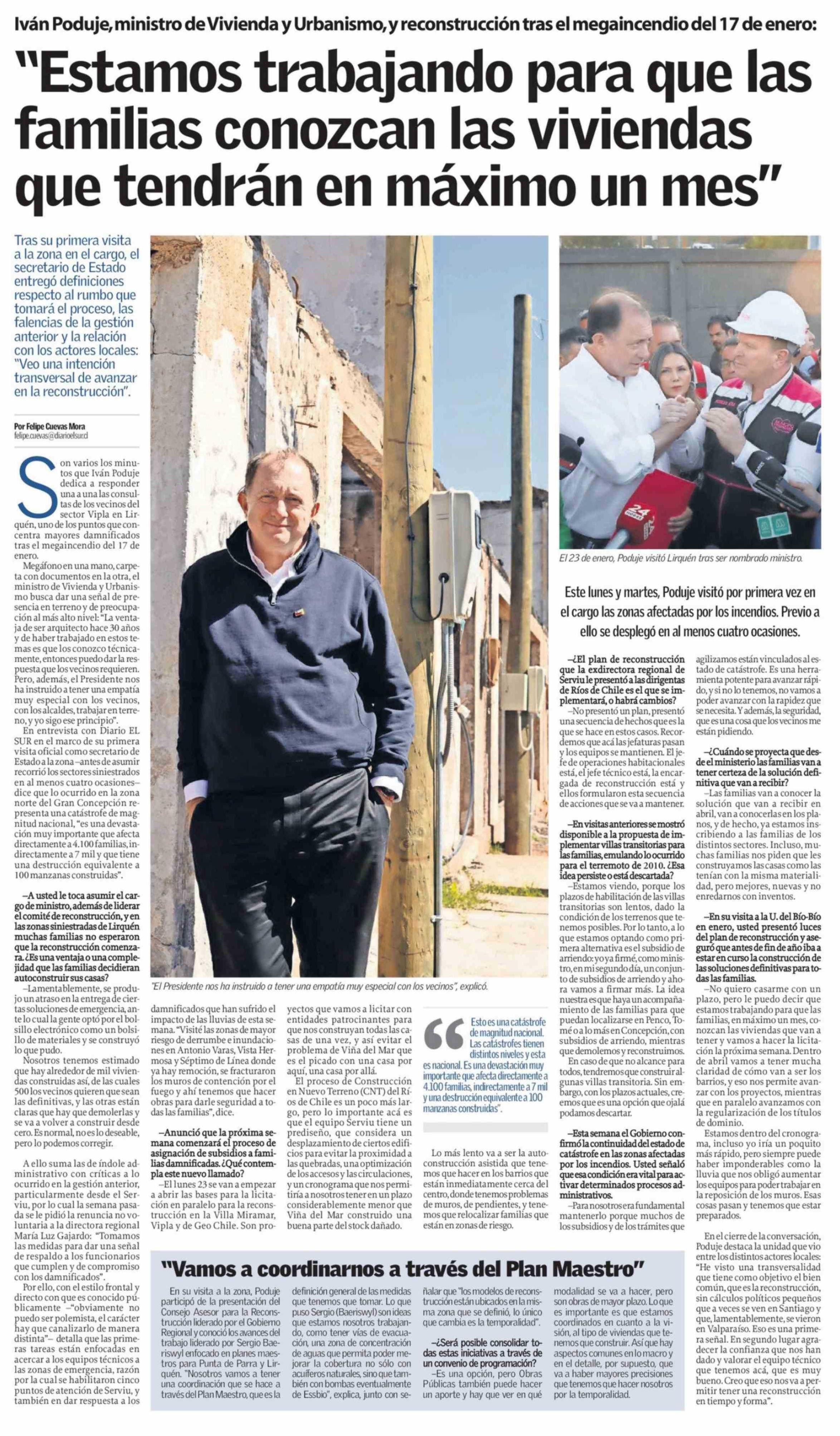 "Estamos trabajando para que las familias conozcan las viviendas que tendrán en máximo un mes"