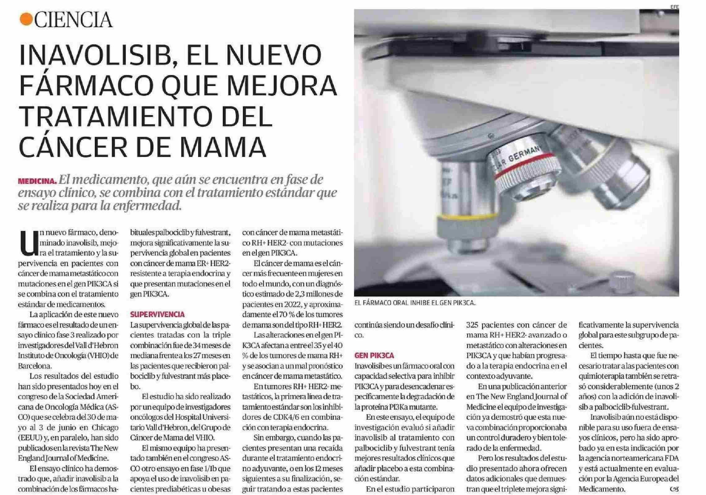 INAVOLISIB, EL NUEVO FARMACO QUE MEJORA TRATAMIENTO DEL CANCER DE MAMA