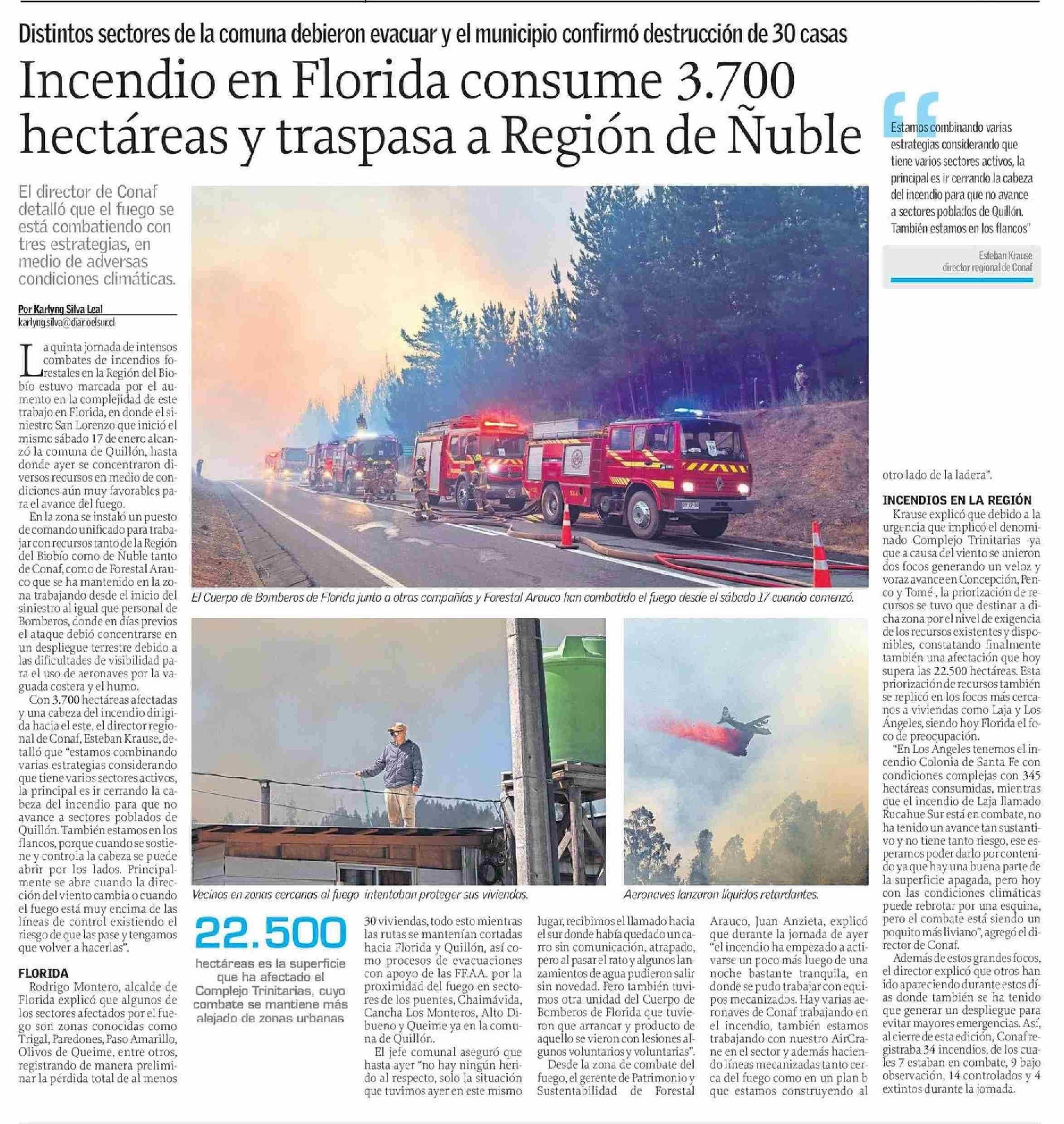 Incendio en Florida consume 3.700 hectáreas y traspasa a Región de Nuble