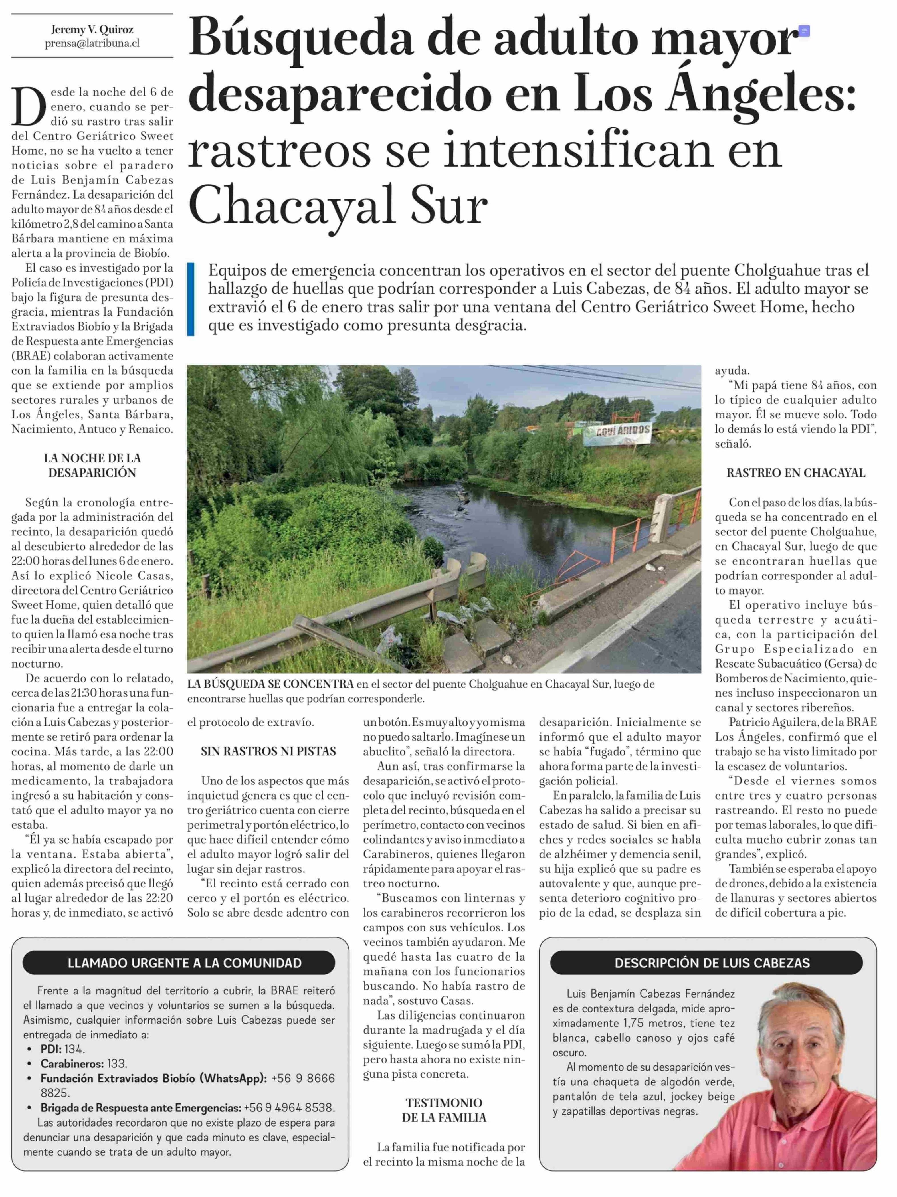 Búsqueda de adulto mayor desaparecido en Los Ángeles: rastreos se intensifican en Chacayal Sur