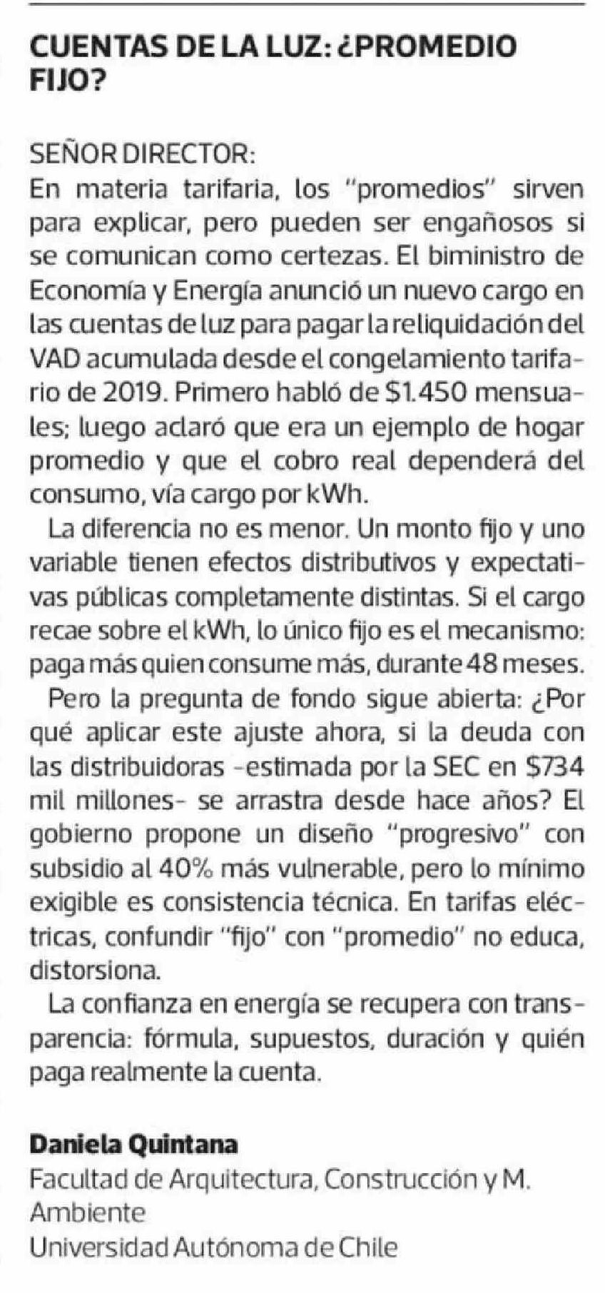 Cartas: CUENTAS DE LA LUZ: ¿ PROMEDIO FIJO?