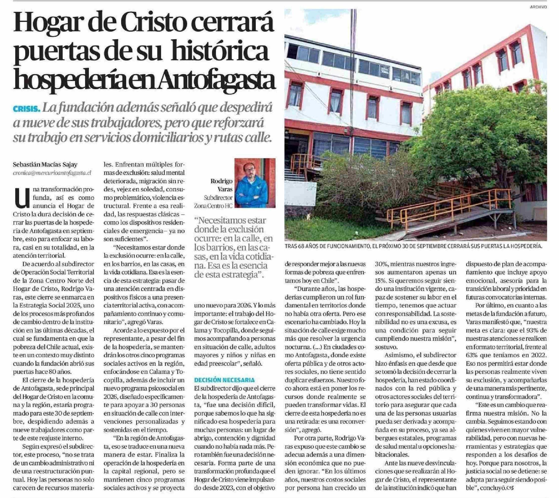 Hogar de Cristo cerrará puertas desu histórica hospederíaen Antofagasta
