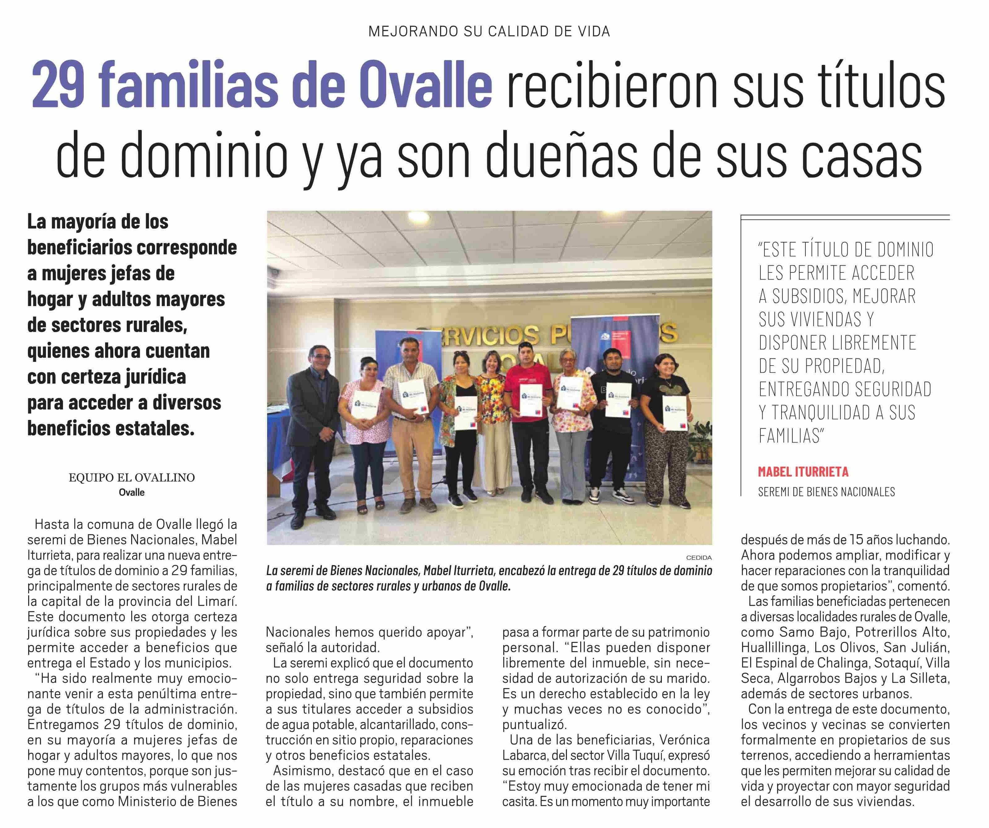 29 familias de Ovalle recibieron sus títulos de dominio y ya son dueñas de sus casas
