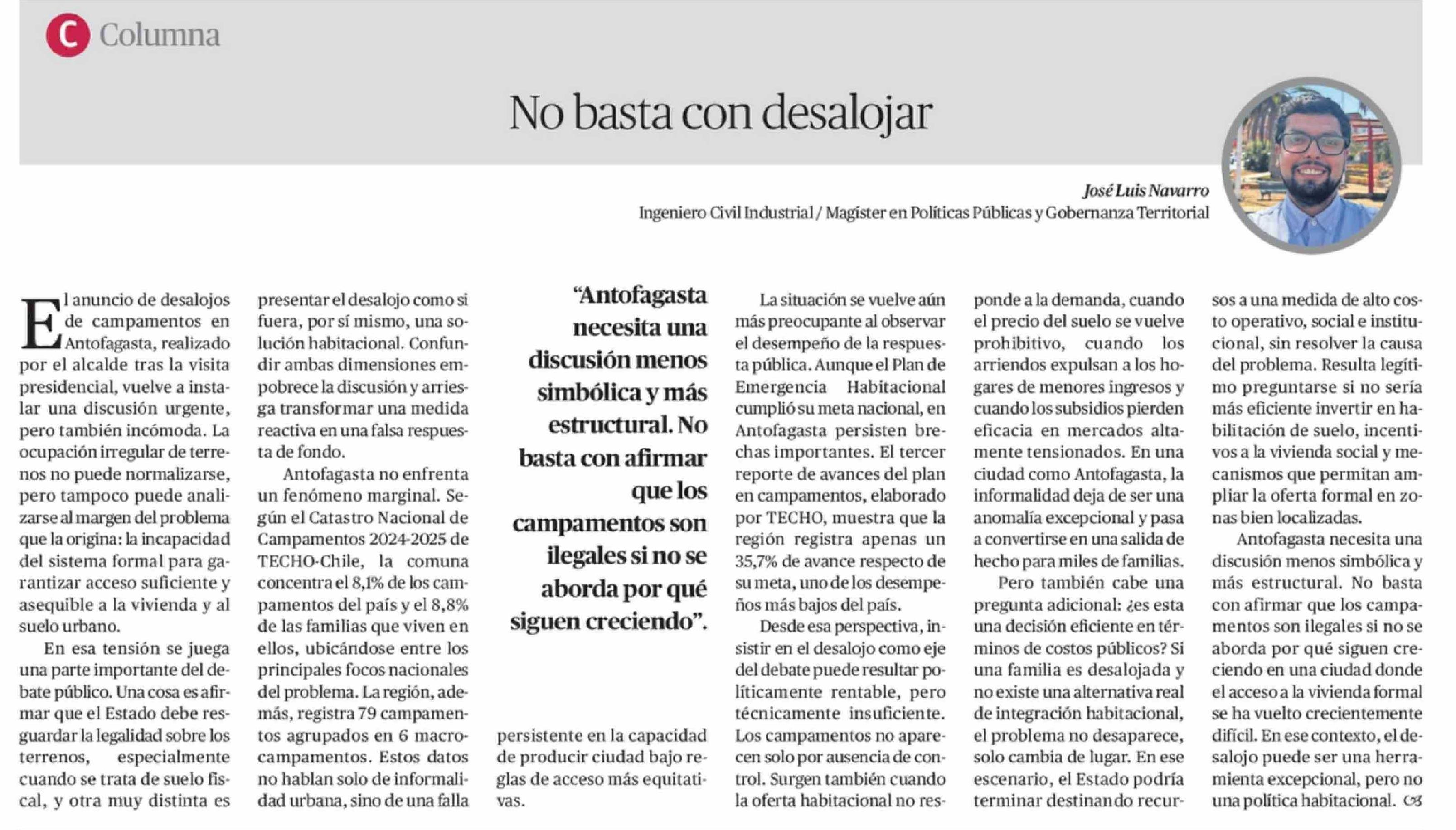 Columnas de Opinión: No basta con desalojar
