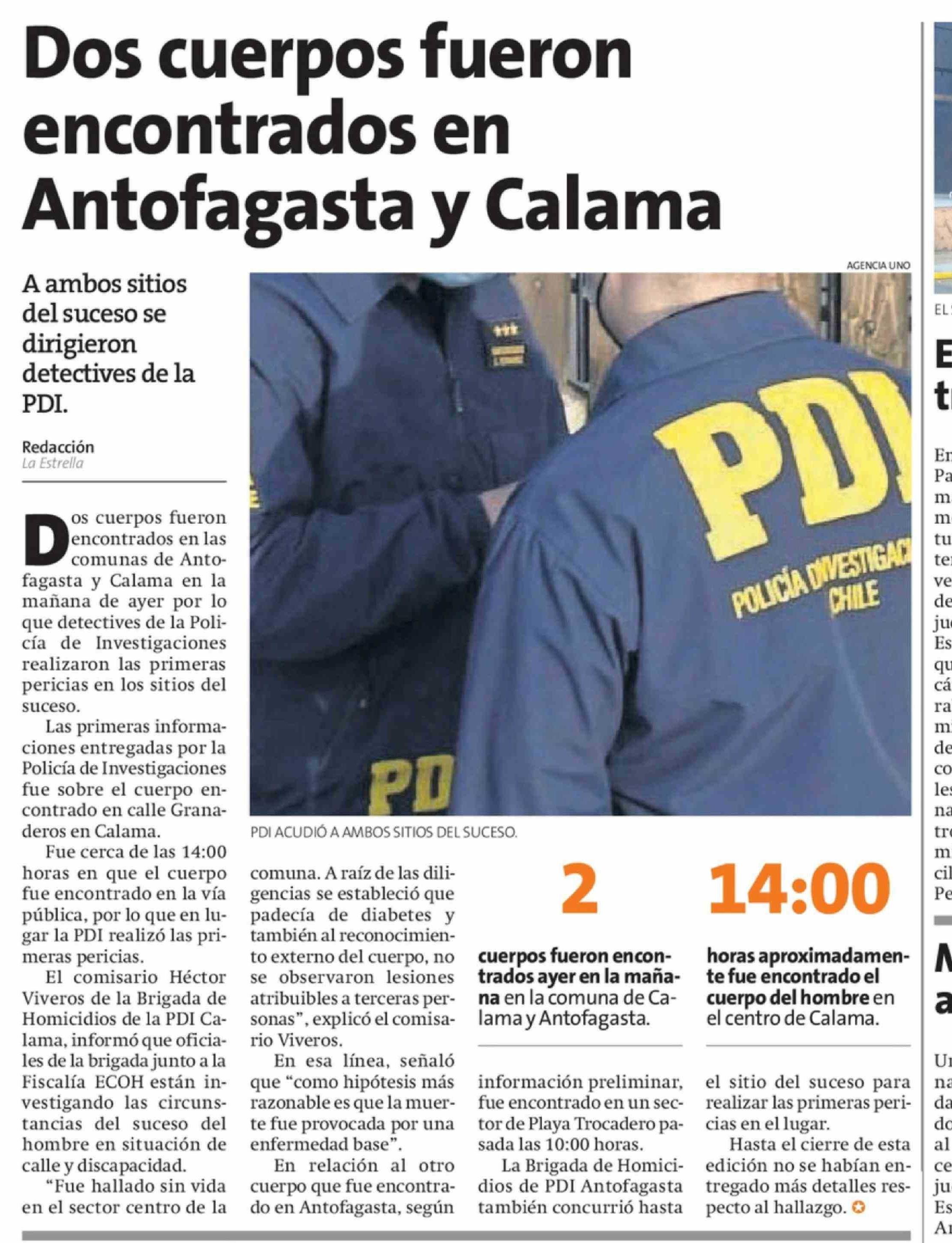 Dos cuerpos fueron encontrados en Antofagasta y Calama