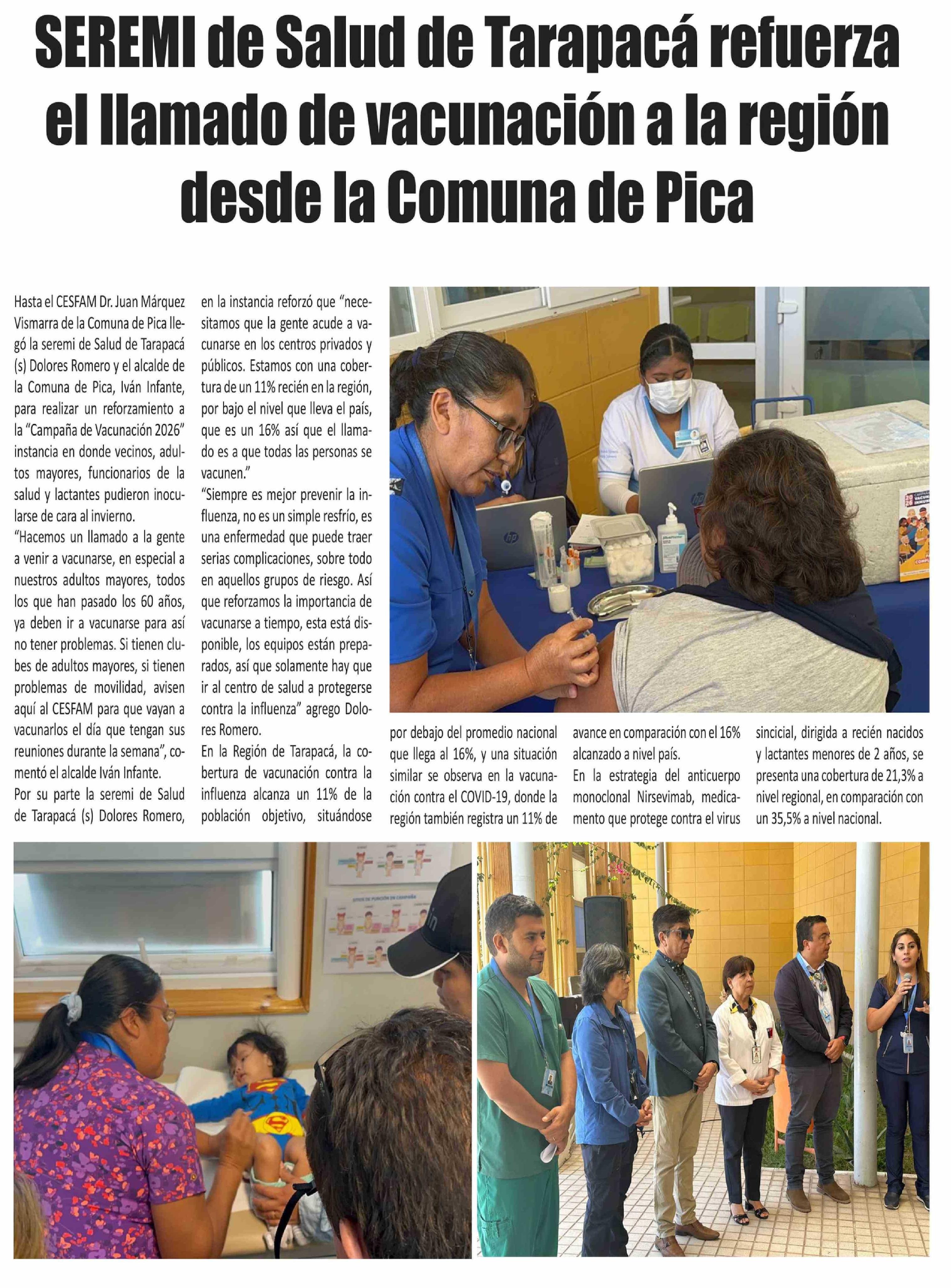 SEREMI de Salud de Tarapacá refuerza el llamado de vacunación a la región desde la Comuna de Pica
