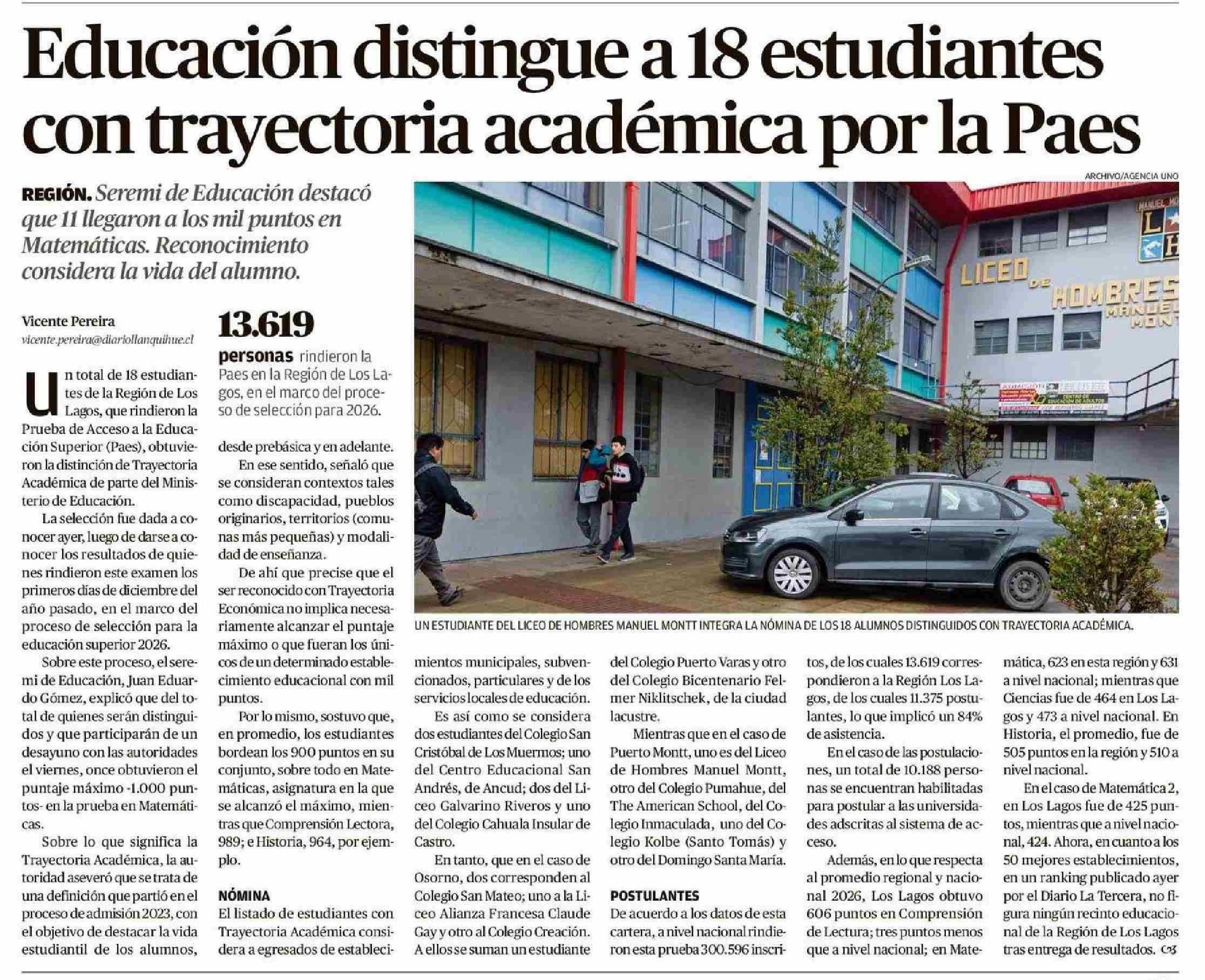 Educación distingue a 18 estudiantes con trayectoria académica por la Paes