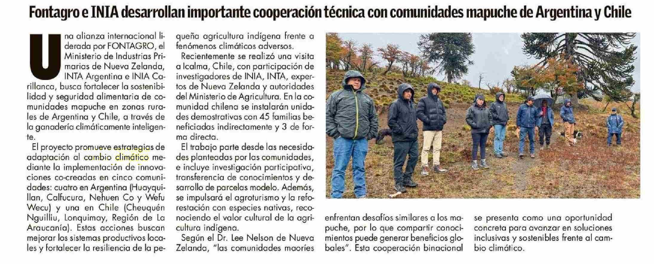 Fontagro e INIA desarrollan importante cooperación técnica con comunidades mapuche de Argentina y Chile
